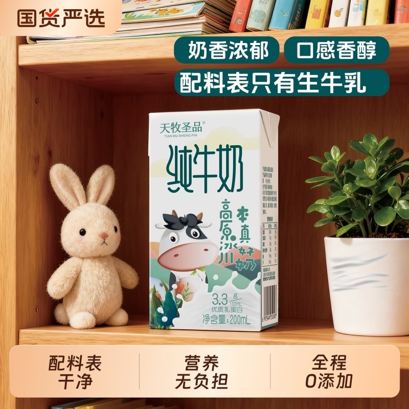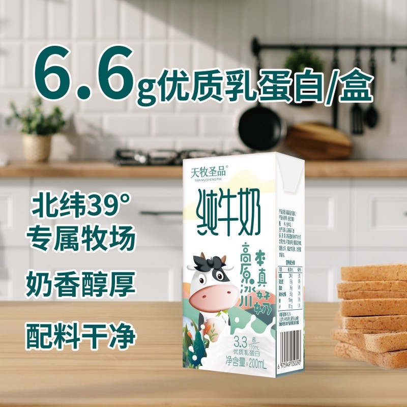 天牧圣品高原纯牛奶4箱200ml*10盒早餐乳制品整箱批发套装