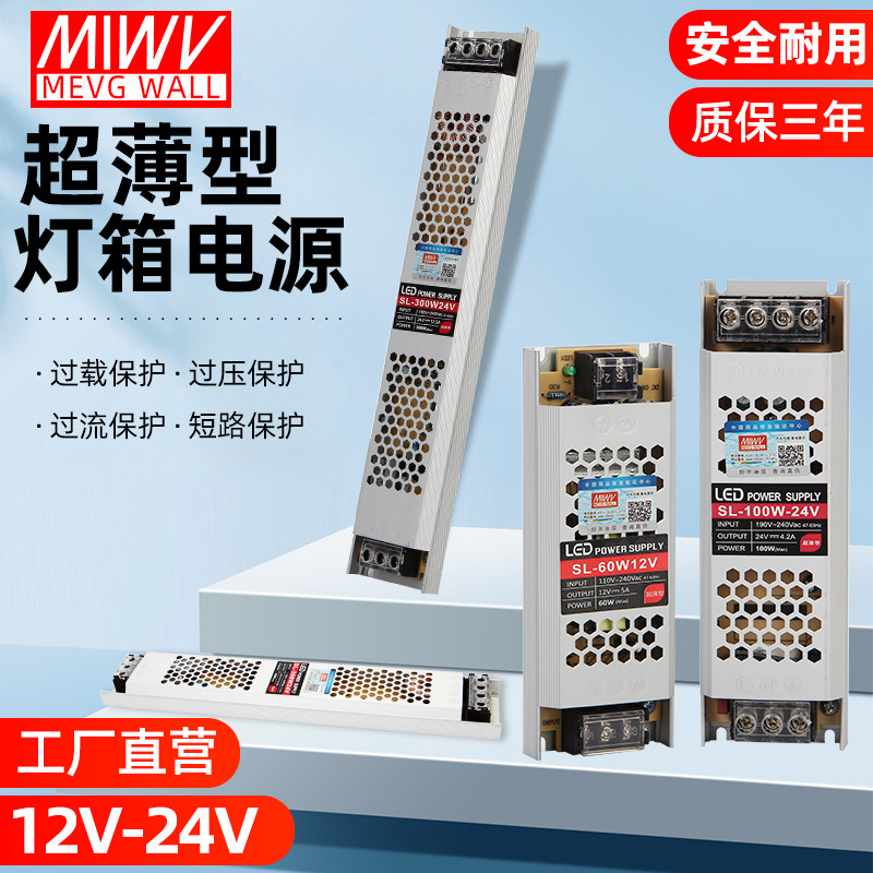原装明伟线灯开关电源12v24v黑金刚超薄60w100w200w300w400变压器