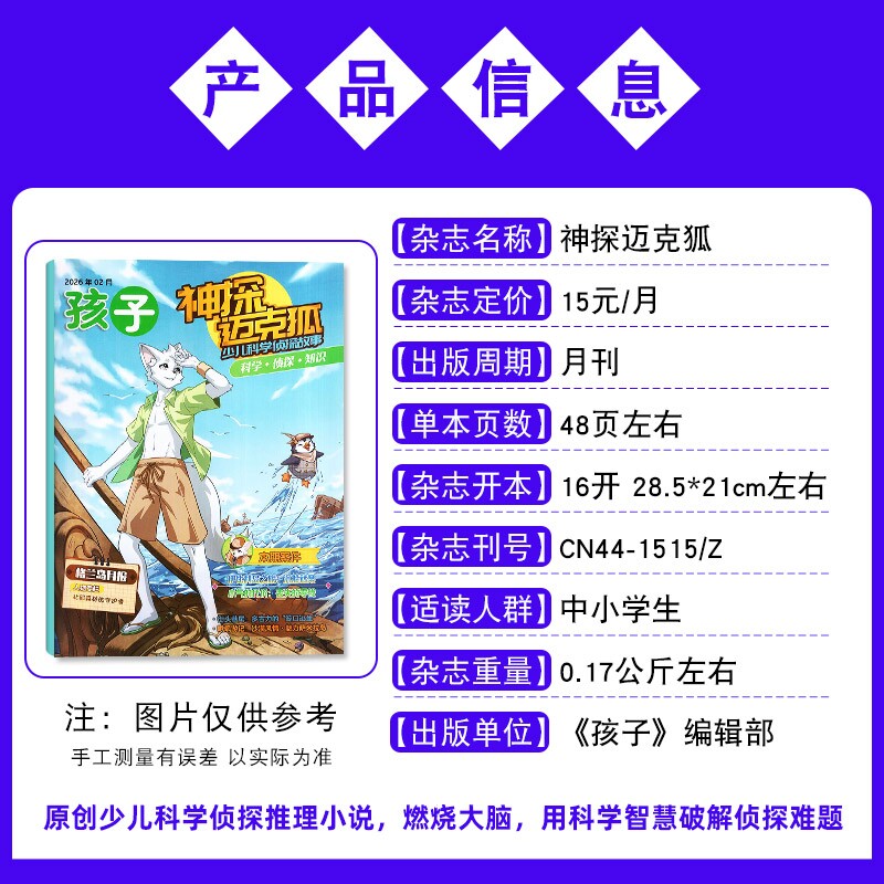 神探迈克狐杂志2026年1/2月新【含全年/半年订阅/2025全年珍藏】送侦探笔记本小学初中生推理漫画侦探悬疑故事推理期刊过刊书刊