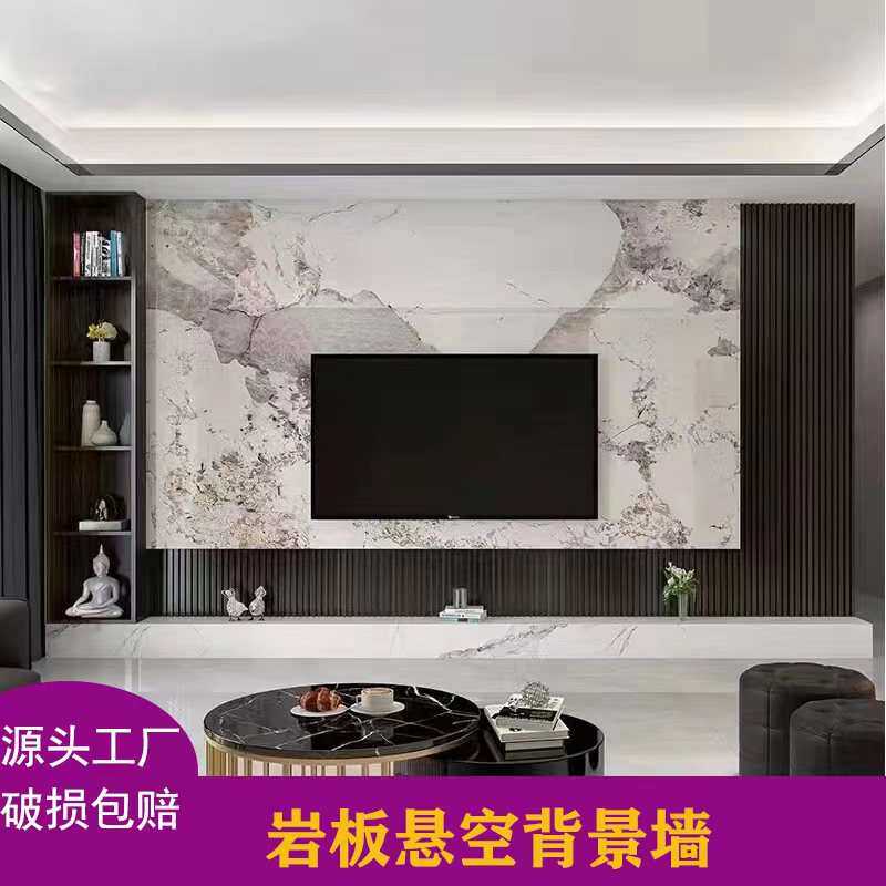 新中式电视背景墙岩板瓷砖微晶石现代简约山水画岩板影视墙大理石