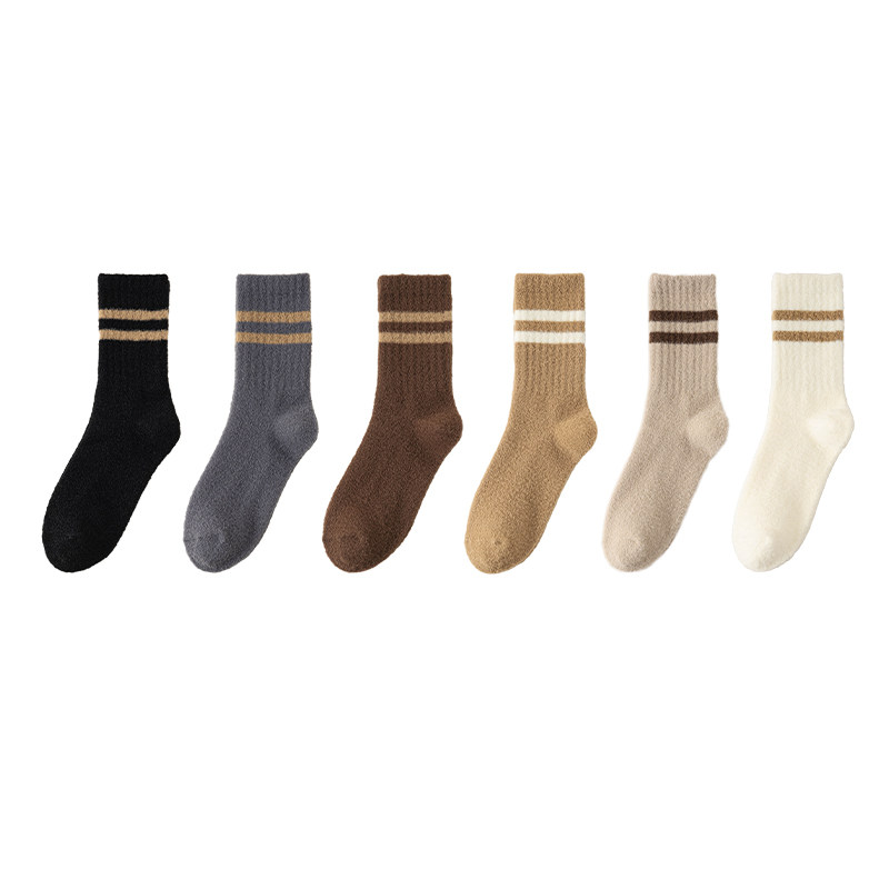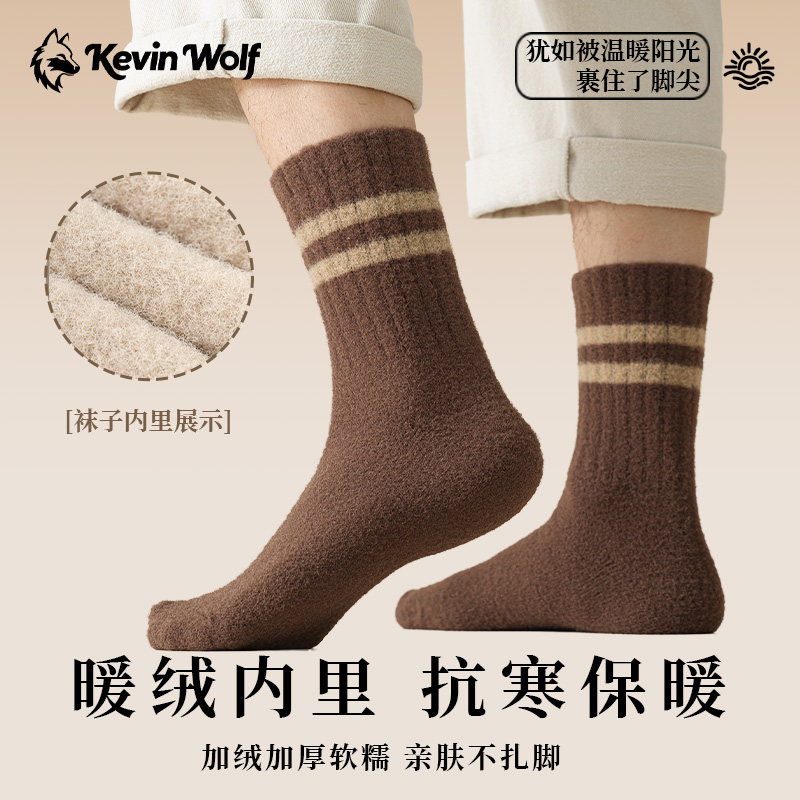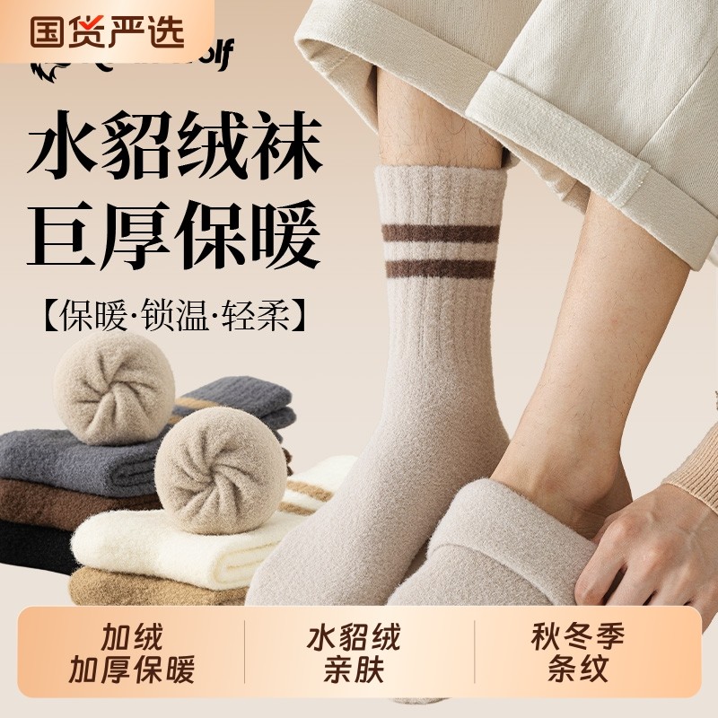 超厚袜子男款秋冬加绒加厚保暖中筒袜条纹抗起球睡眠袜水貂绒长袜