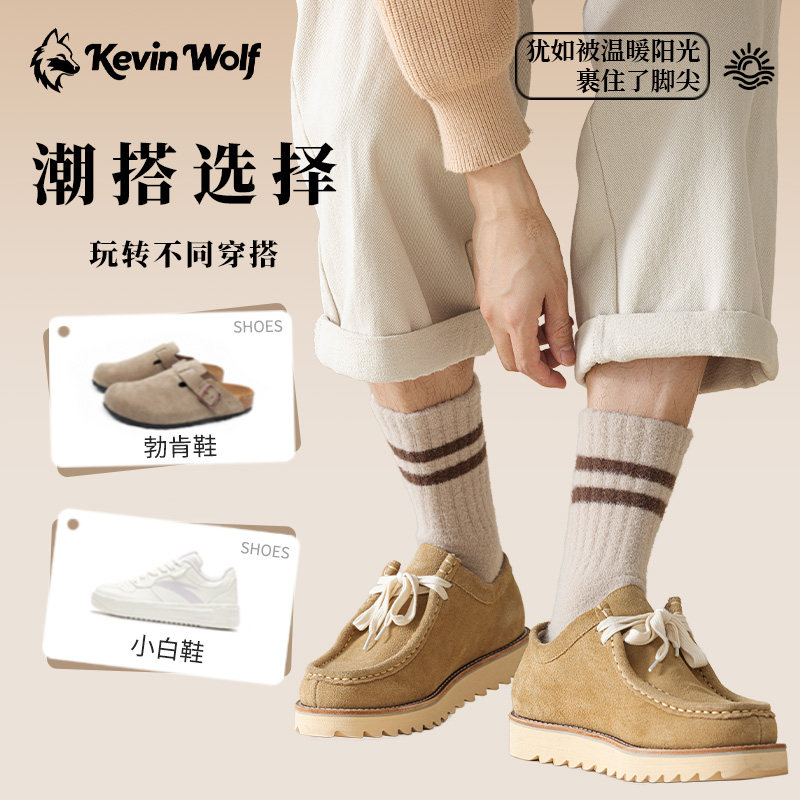 耐尔绵羊毛袜子女秋冬长袜加厚保暖复古百搭中筒袜ins潮堆堆袜