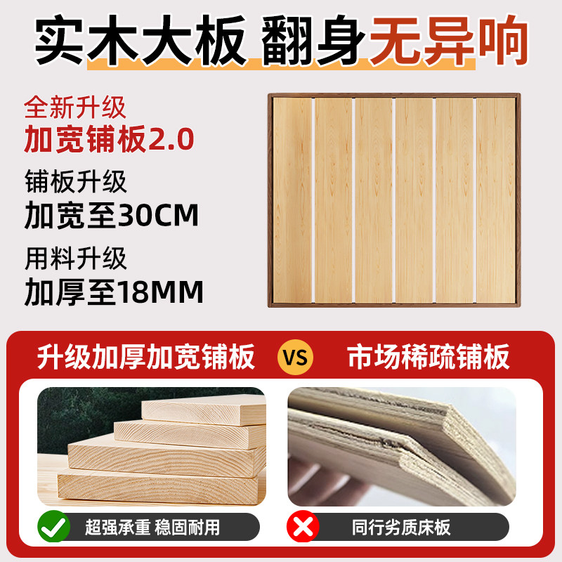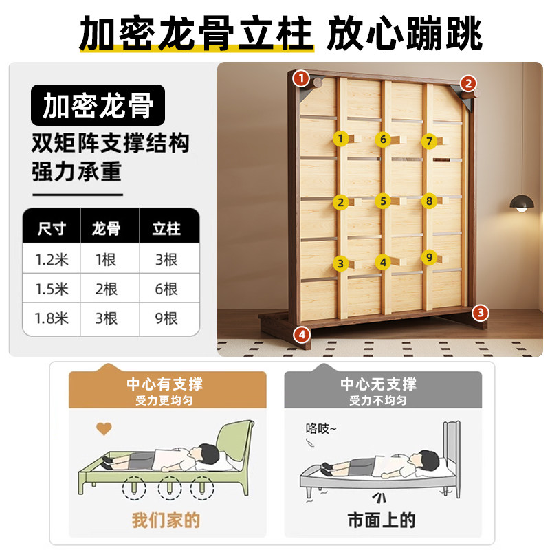 全实木无床头床架榫卯静音悬浮床小户型齐边排骨架床架可定制尺寸