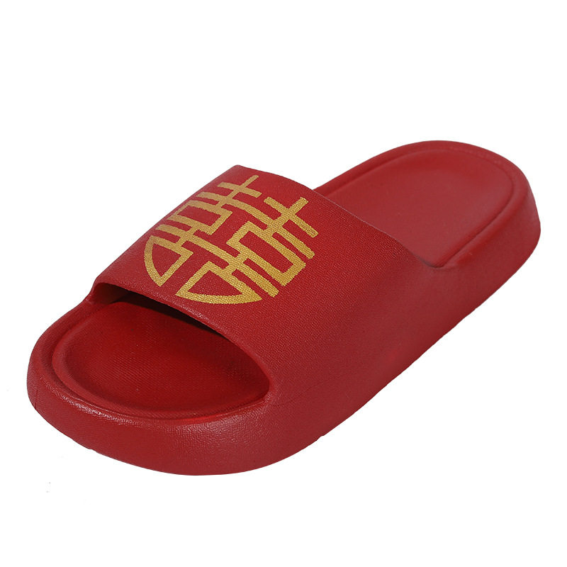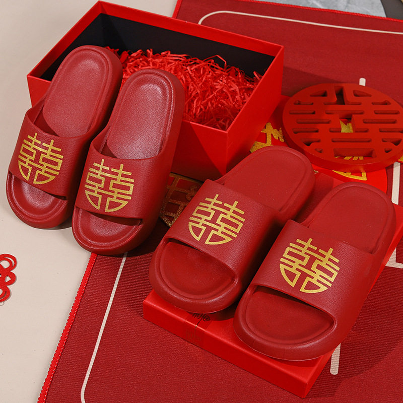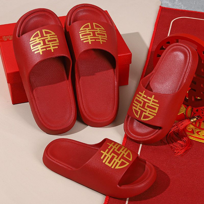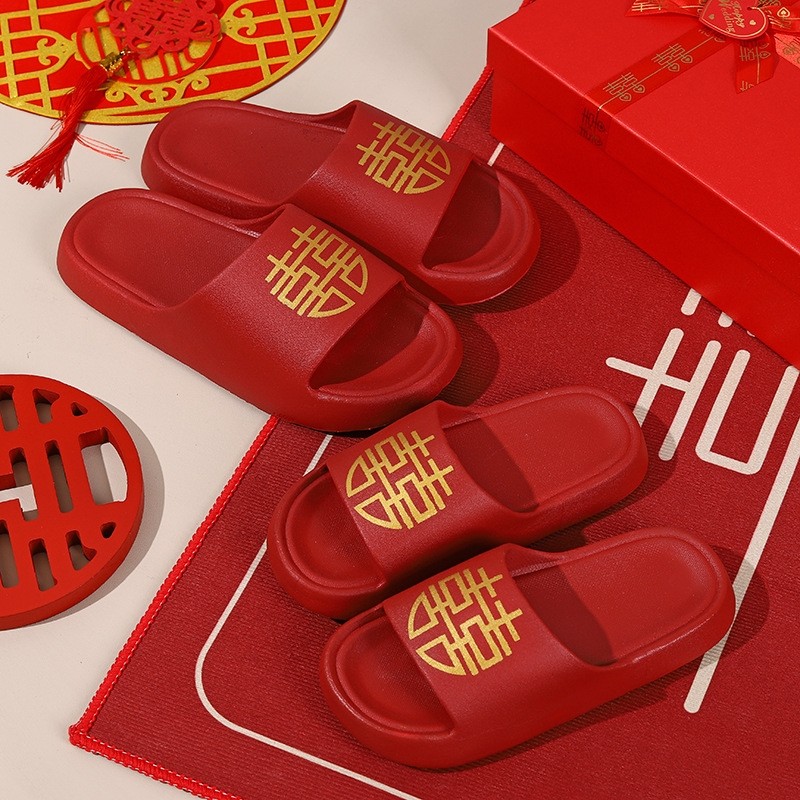 结婚喜庆拖鞋红色一对情侣新婚新郎新娘婚鞋买一送一厚底家居拖鞋