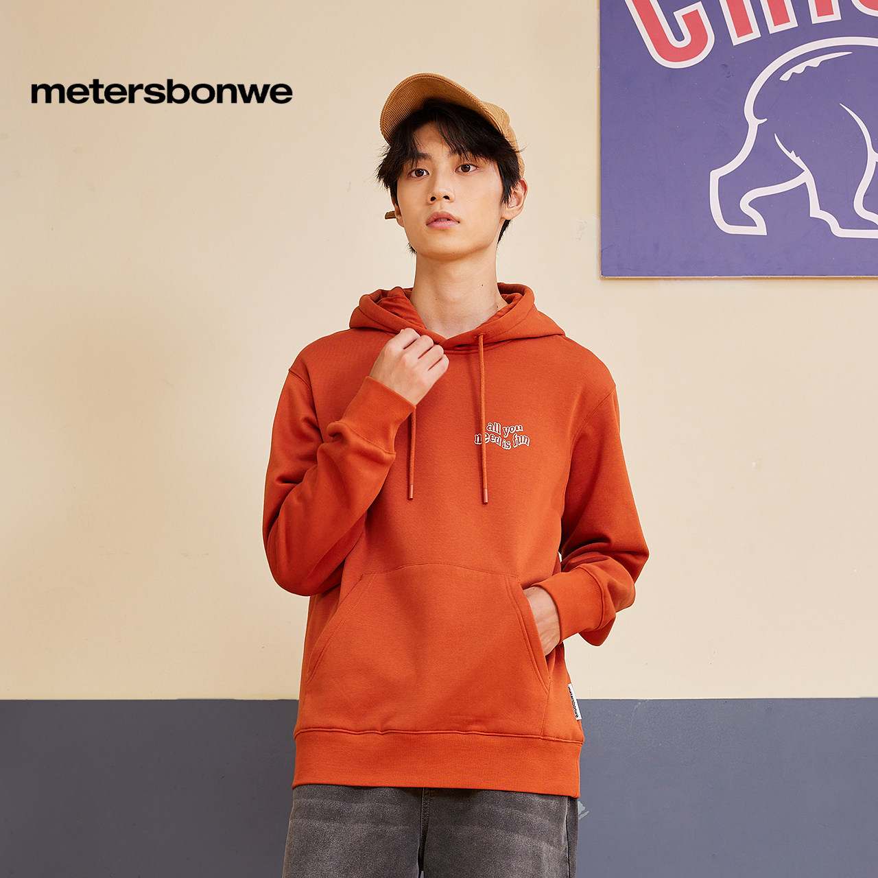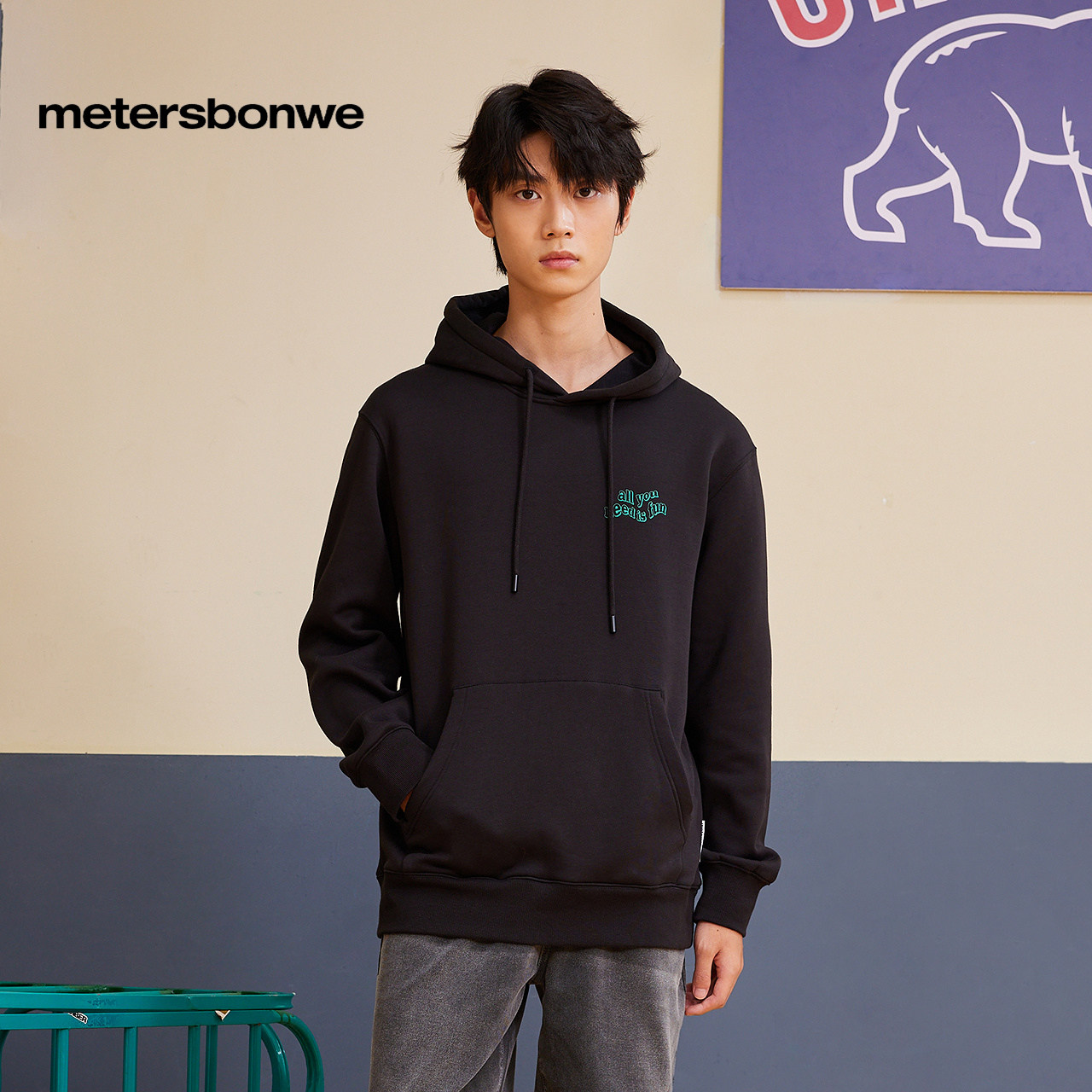 美特斯邦威卫衣男秋季印花连帽休闲纯色舒适百搭舒适保暖男士上衣