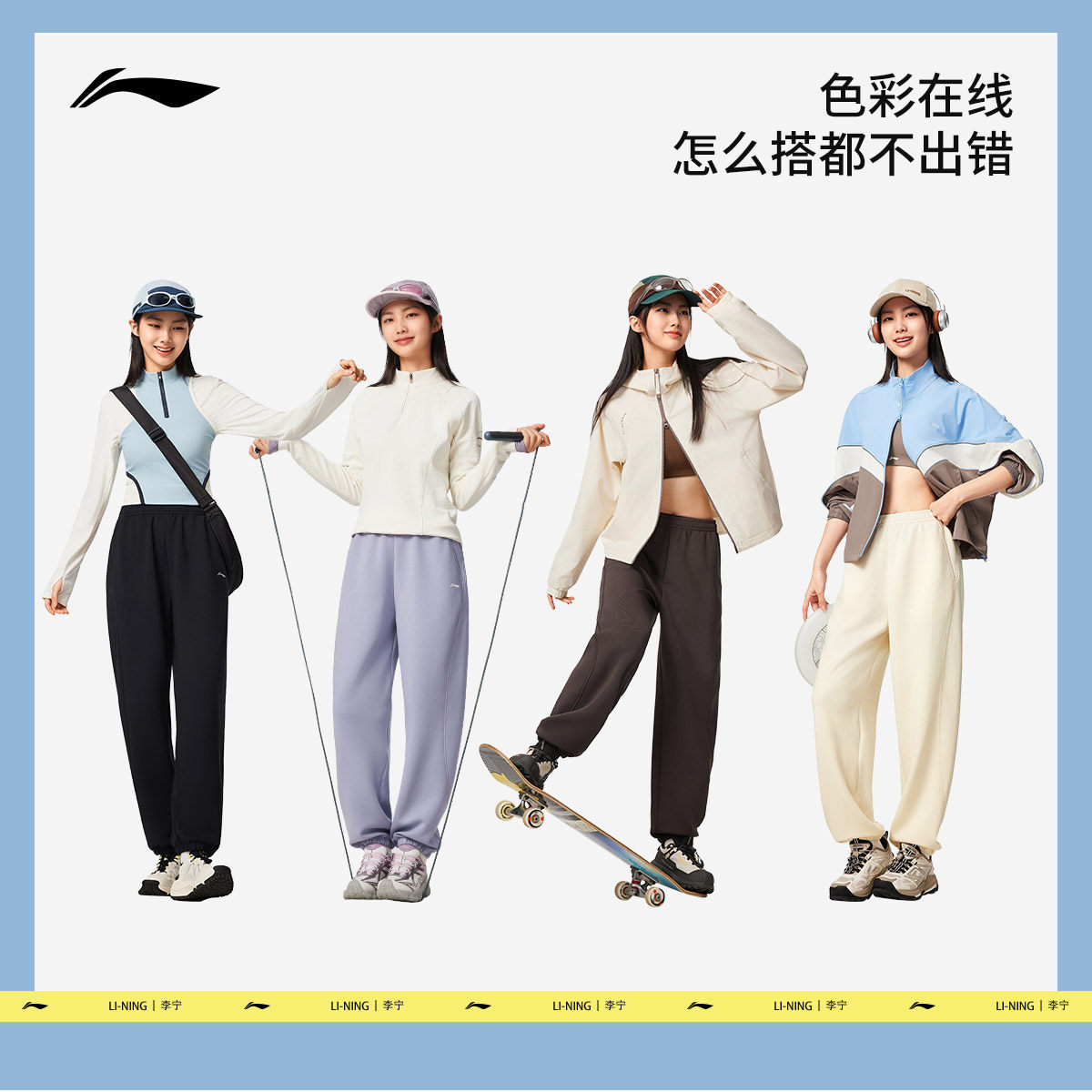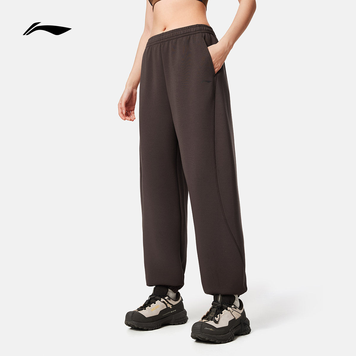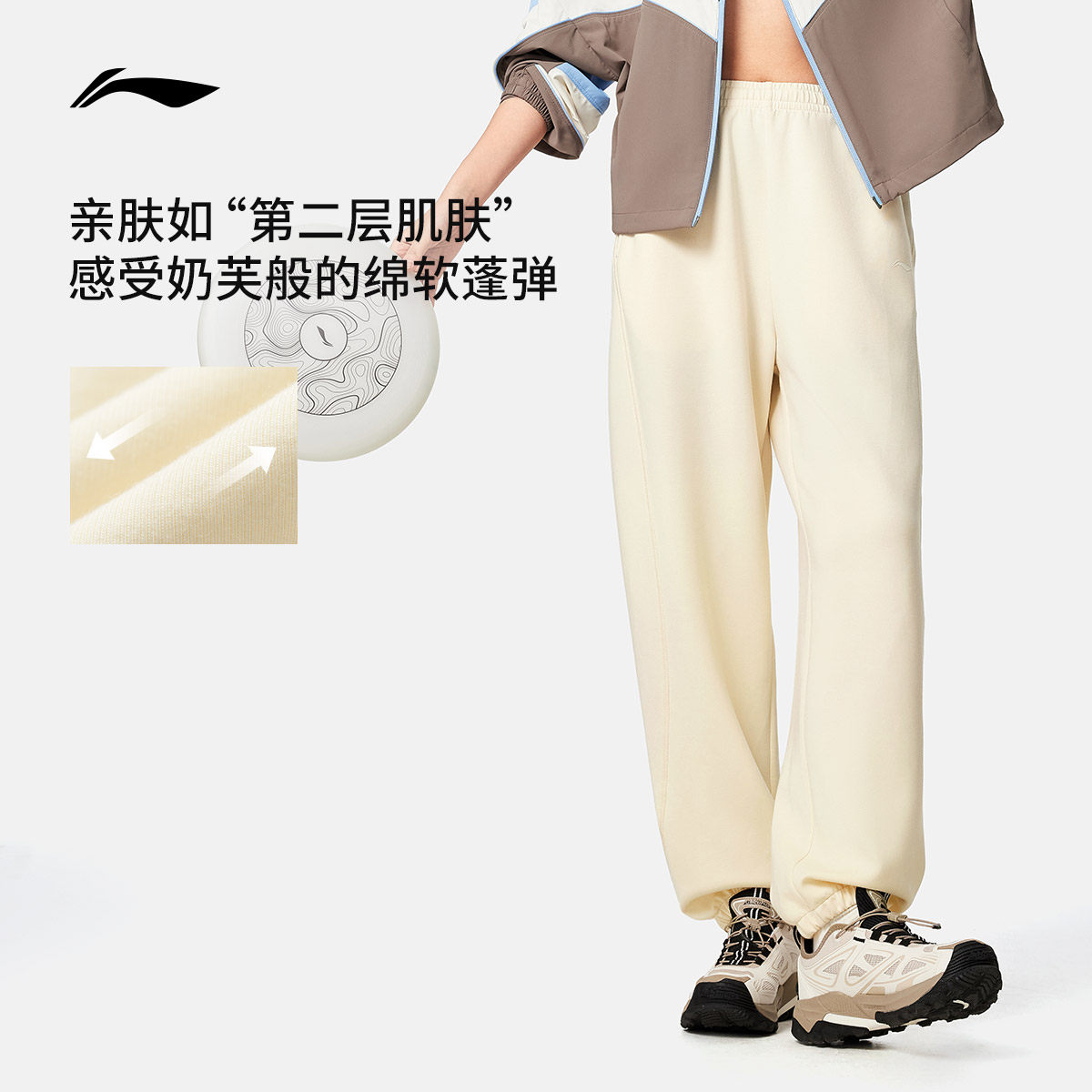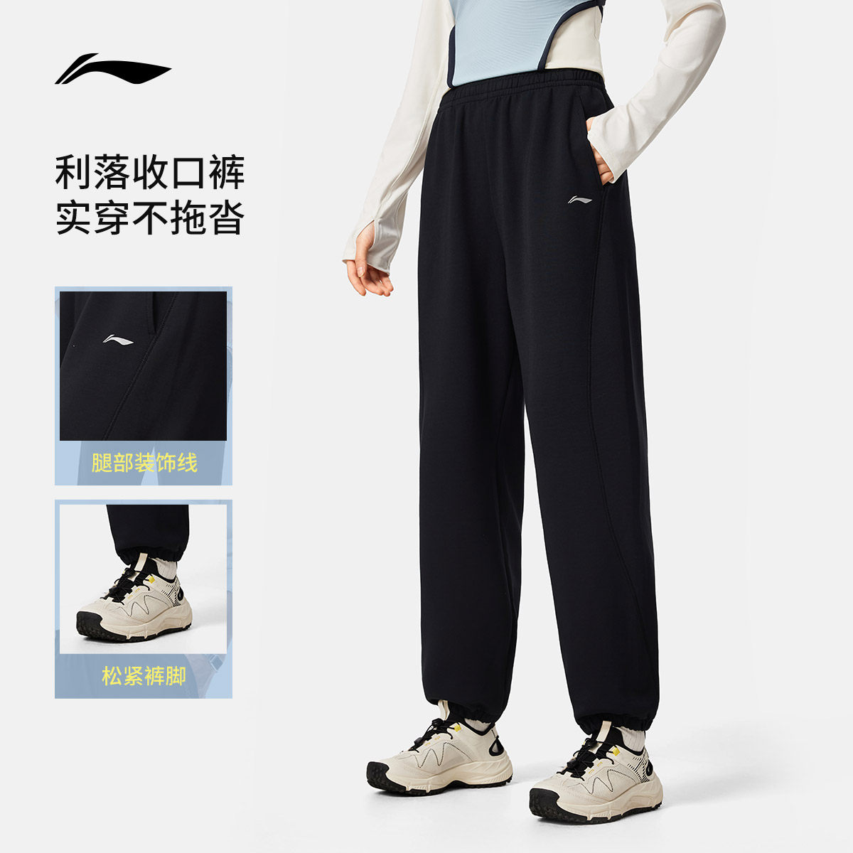 李宁奶芙裤丨卫裤柔弹健身长裤女休闲黑色裤子束脚针织运动裤女款