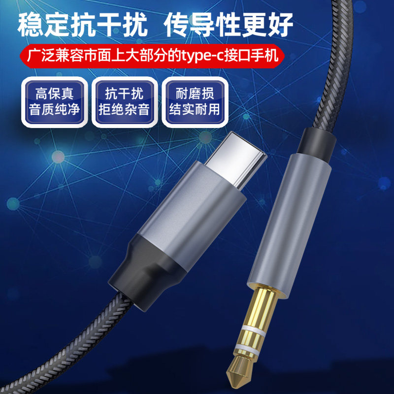 腾飞aux音频线车用音响箱3.5mm双头插电脑通用华为手机typec输出转换车载播放器头戴式耳机aus数据公对公
