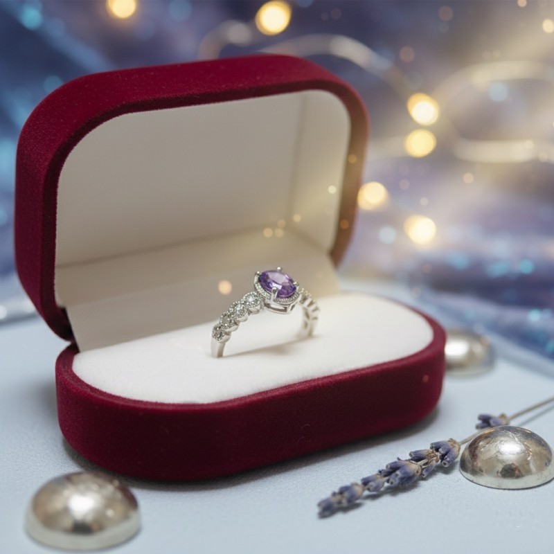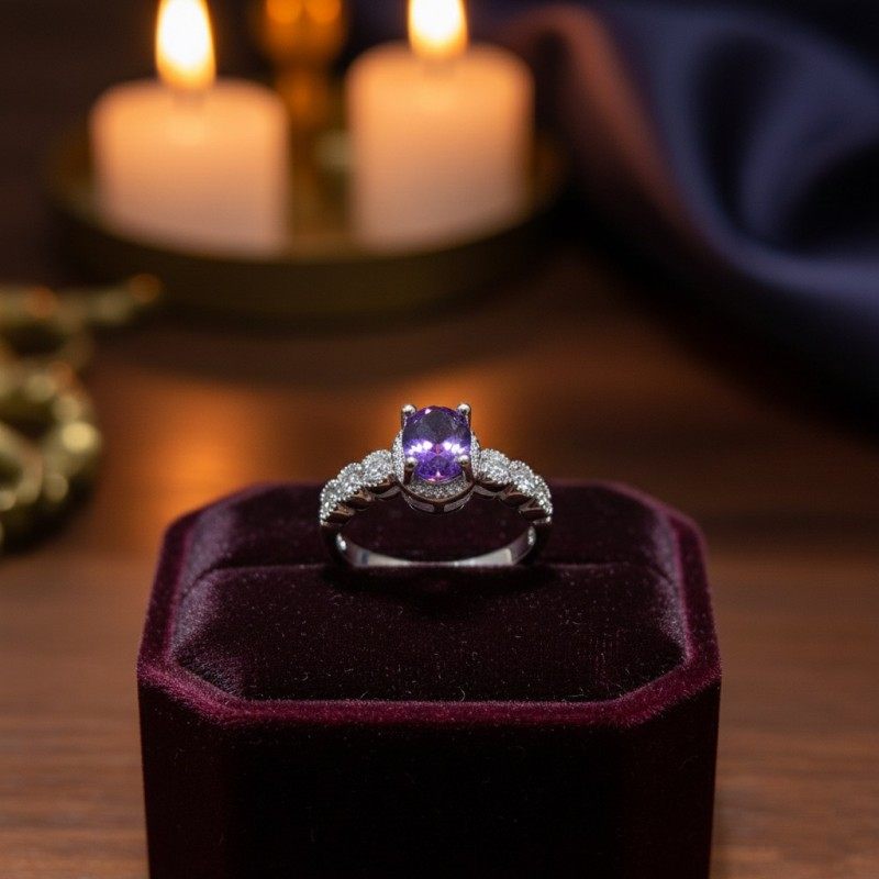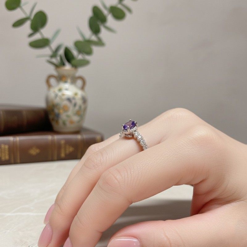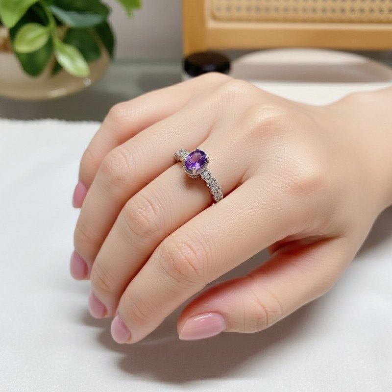 天然紫水晶戒指女轻奢小众设计高级感复古简约气质百搭饰品礼物