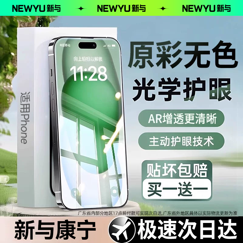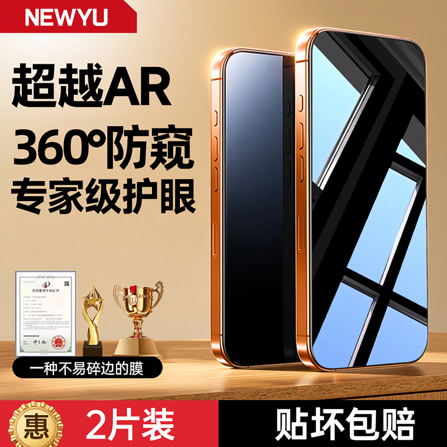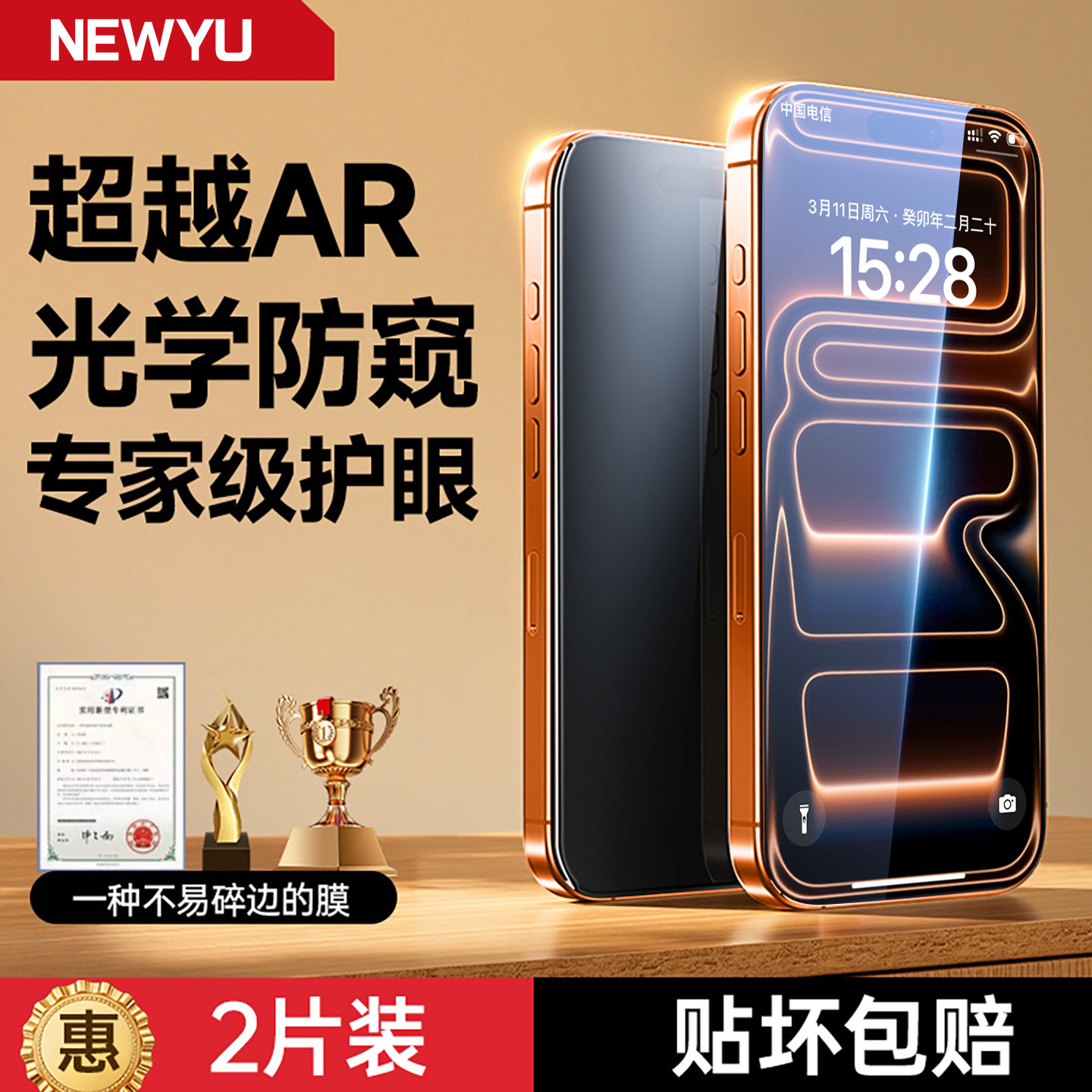 【7.0超越AR抗反射】NEWYU适用于苹果17钢化膜iPhone17ProMax防窥钢化膜16贴膜15Pm/air防偷窥14pm全屏护眼膜