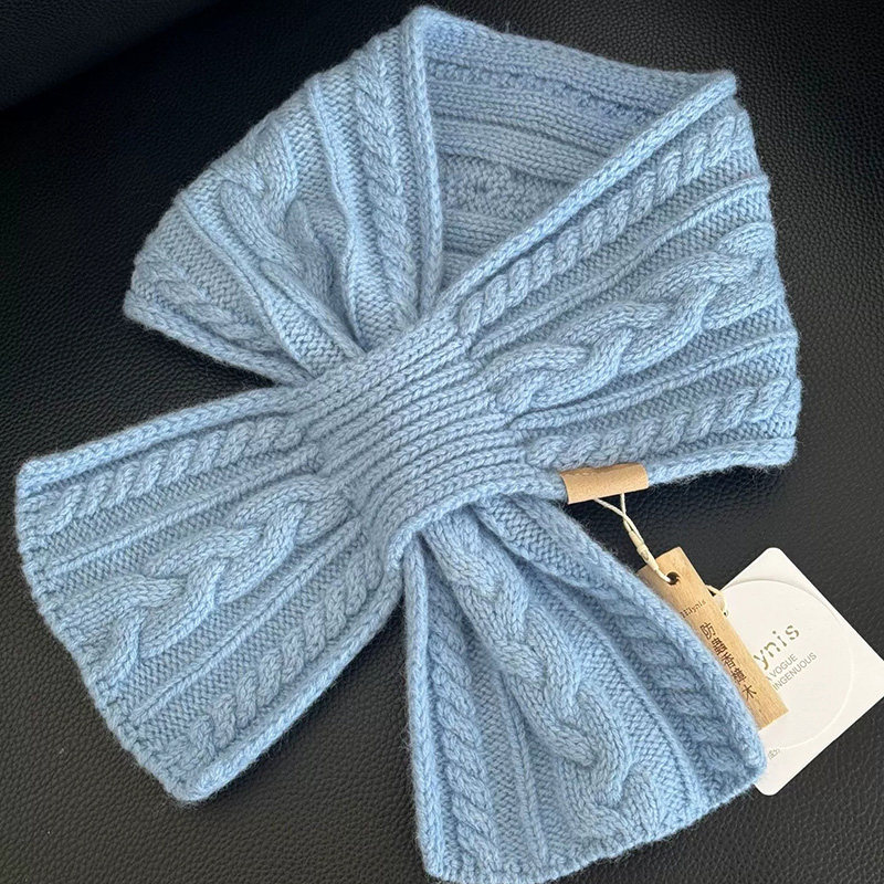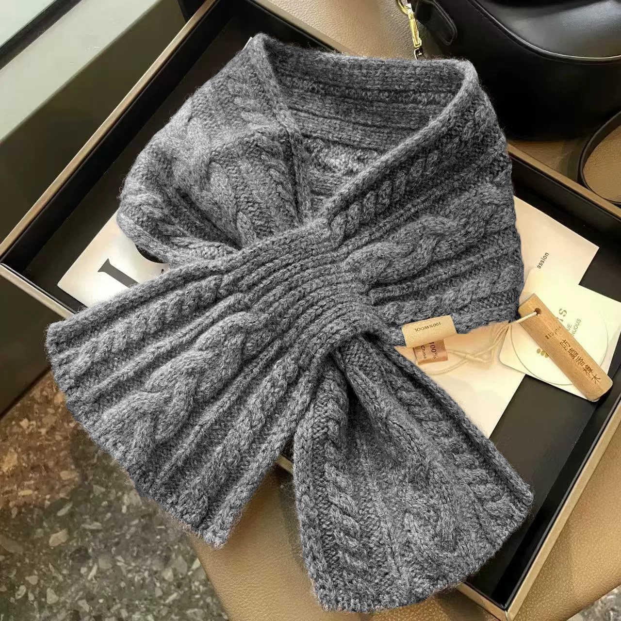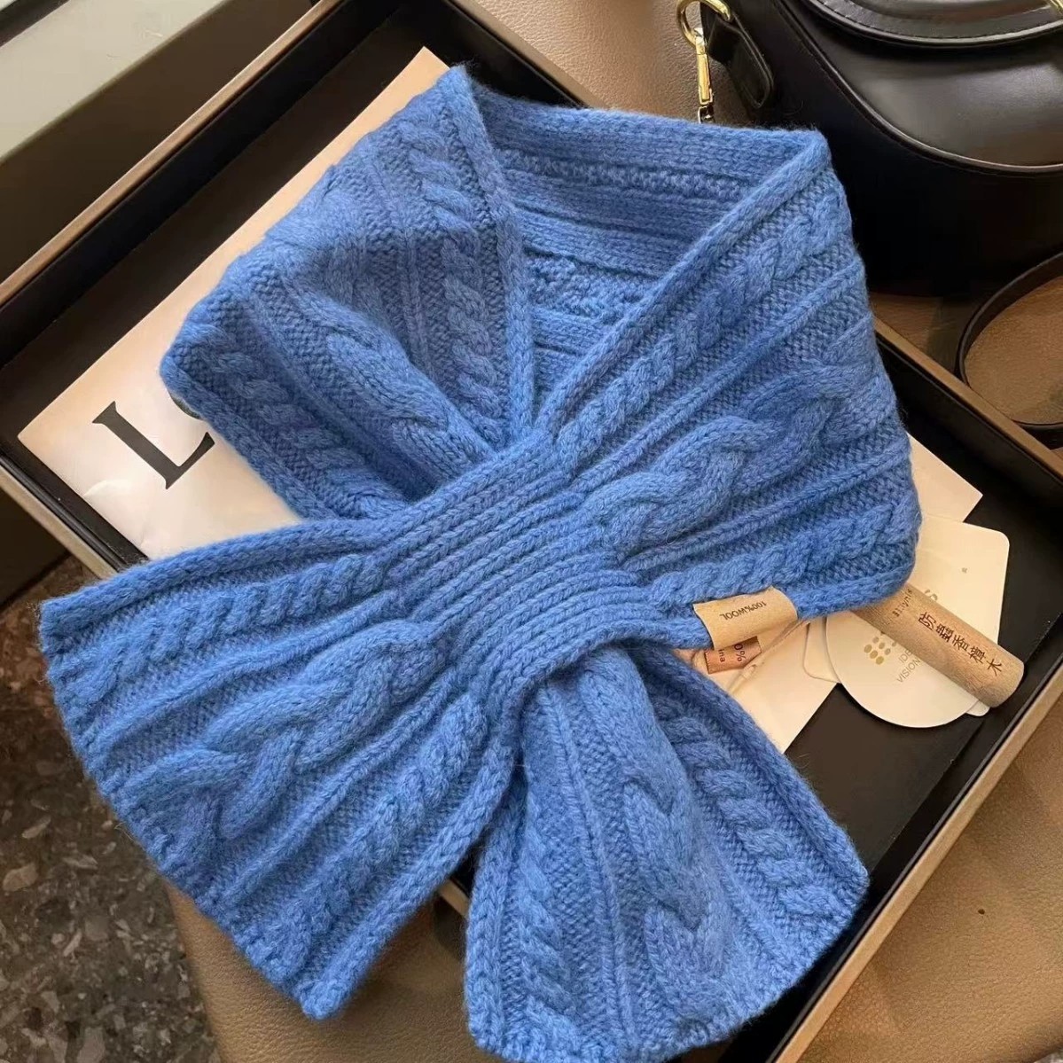 100%羊毛小围巾女冬季麻花复古百搭装饰交叉针织保暖护颈短款围脖