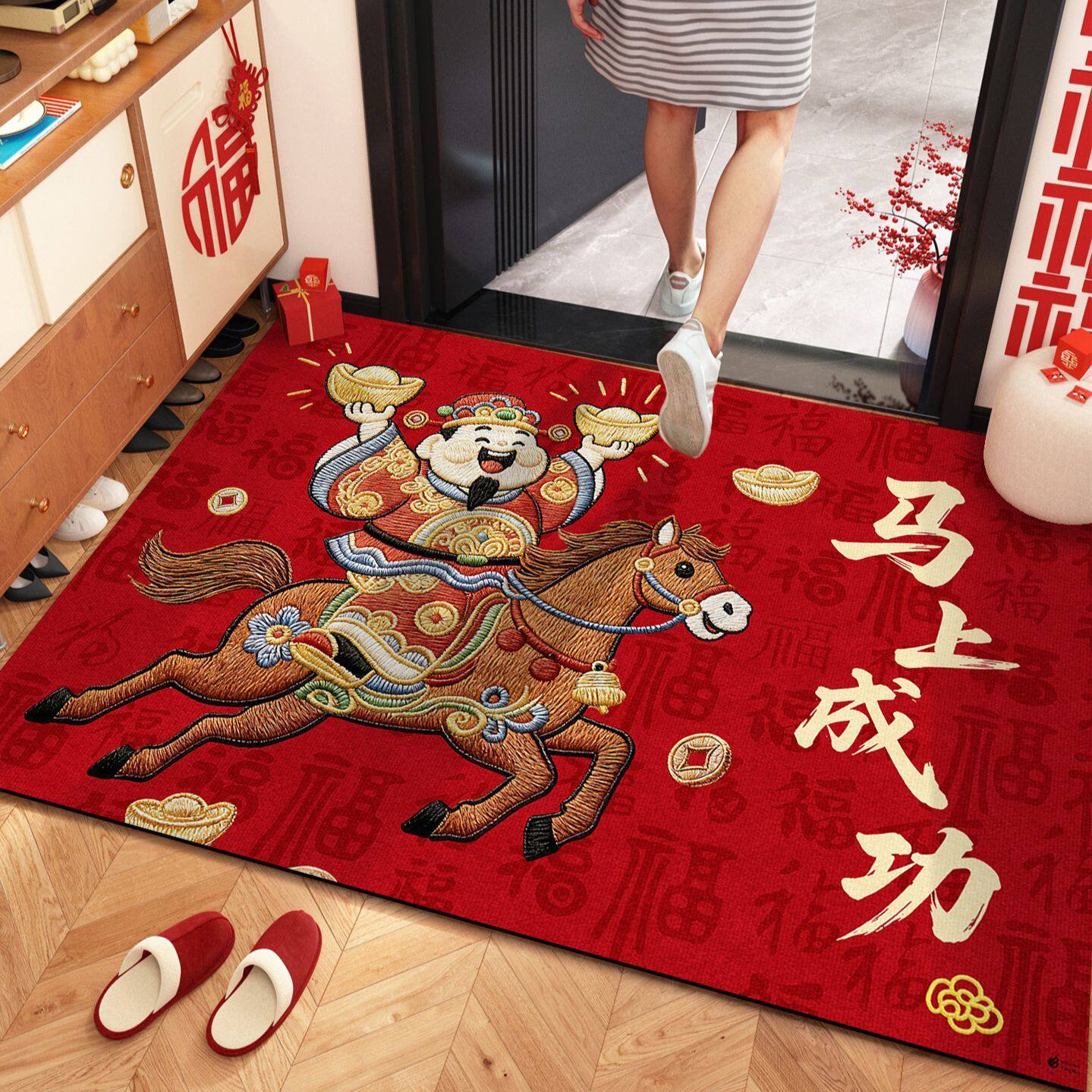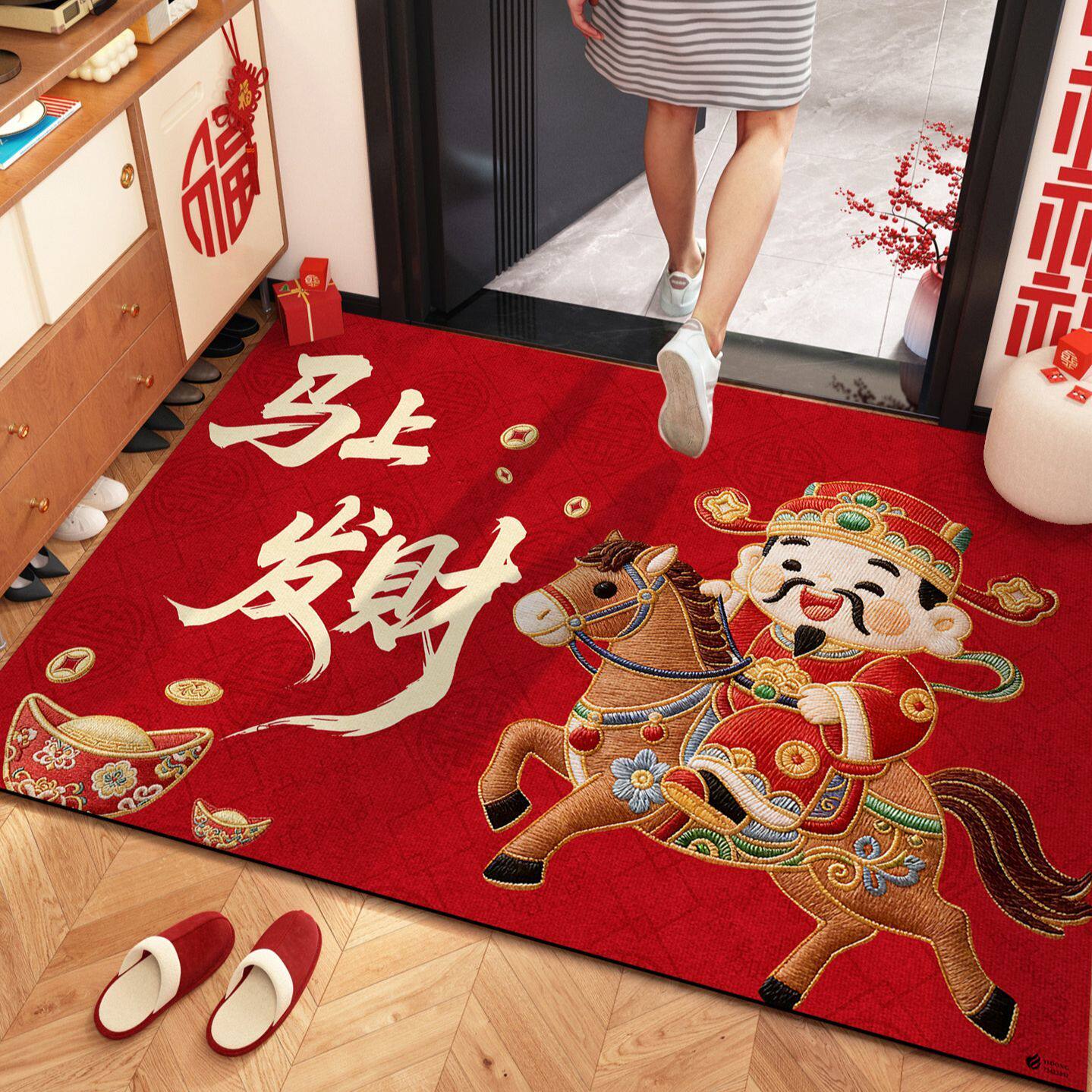 红色马年地垫入户门垫喜庆中式进门高级感大门口脚垫别墅新款垫子