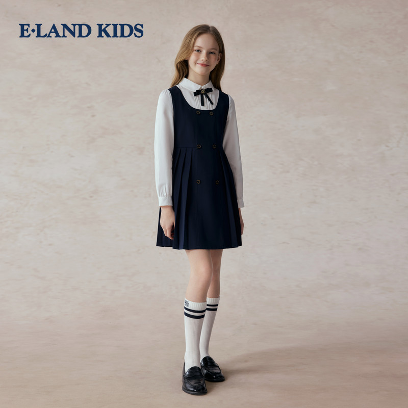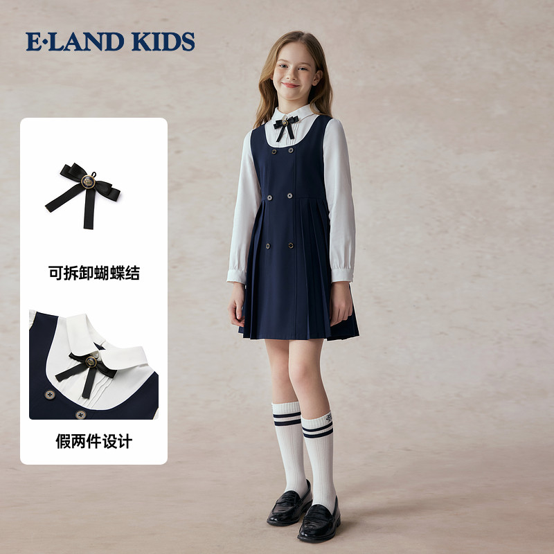 eland kids衣恋童装女童连衣裙25秋新品演出服假两件裙子演出服