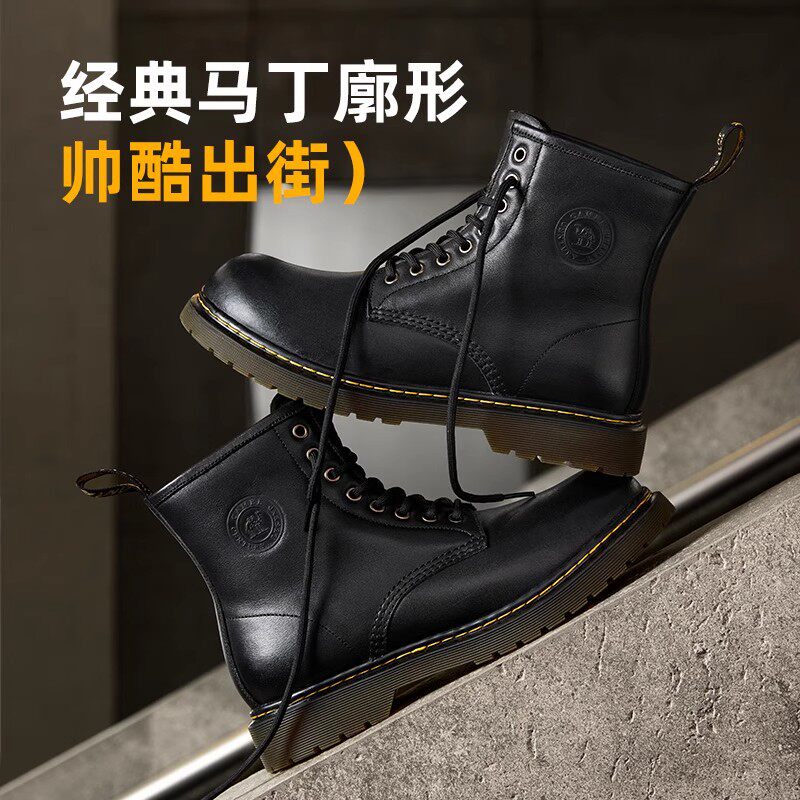 MRA米奇马丁靴男鞋中帮厚底德比鞋复古工装靴大黄靴圆头大头皮鞋