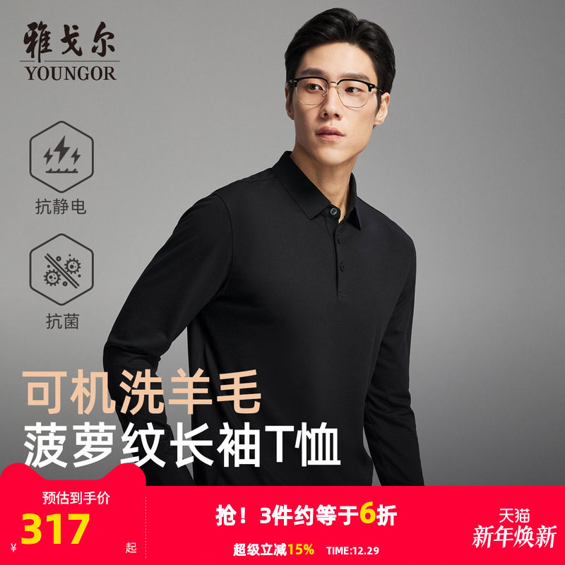 【抗菌+抗静电】雅戈尔秋冬季男士可机洗羊毛商务休闲长袖POLO衫