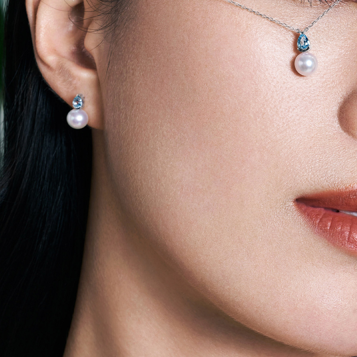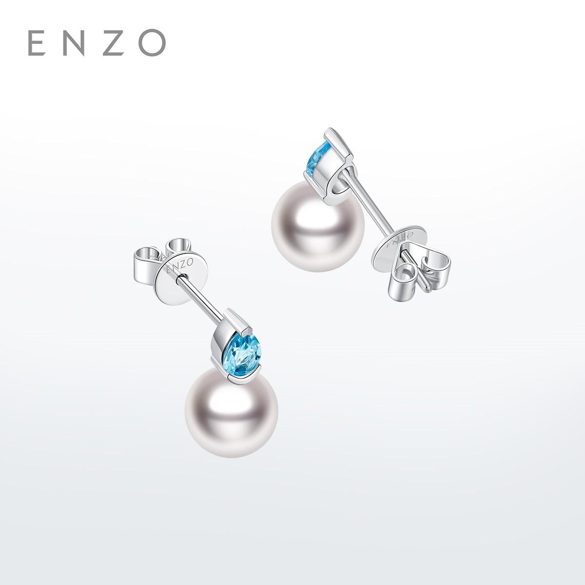 ENZO 18K金海水珍珠托帕石耳钉女EZT505新年礼物