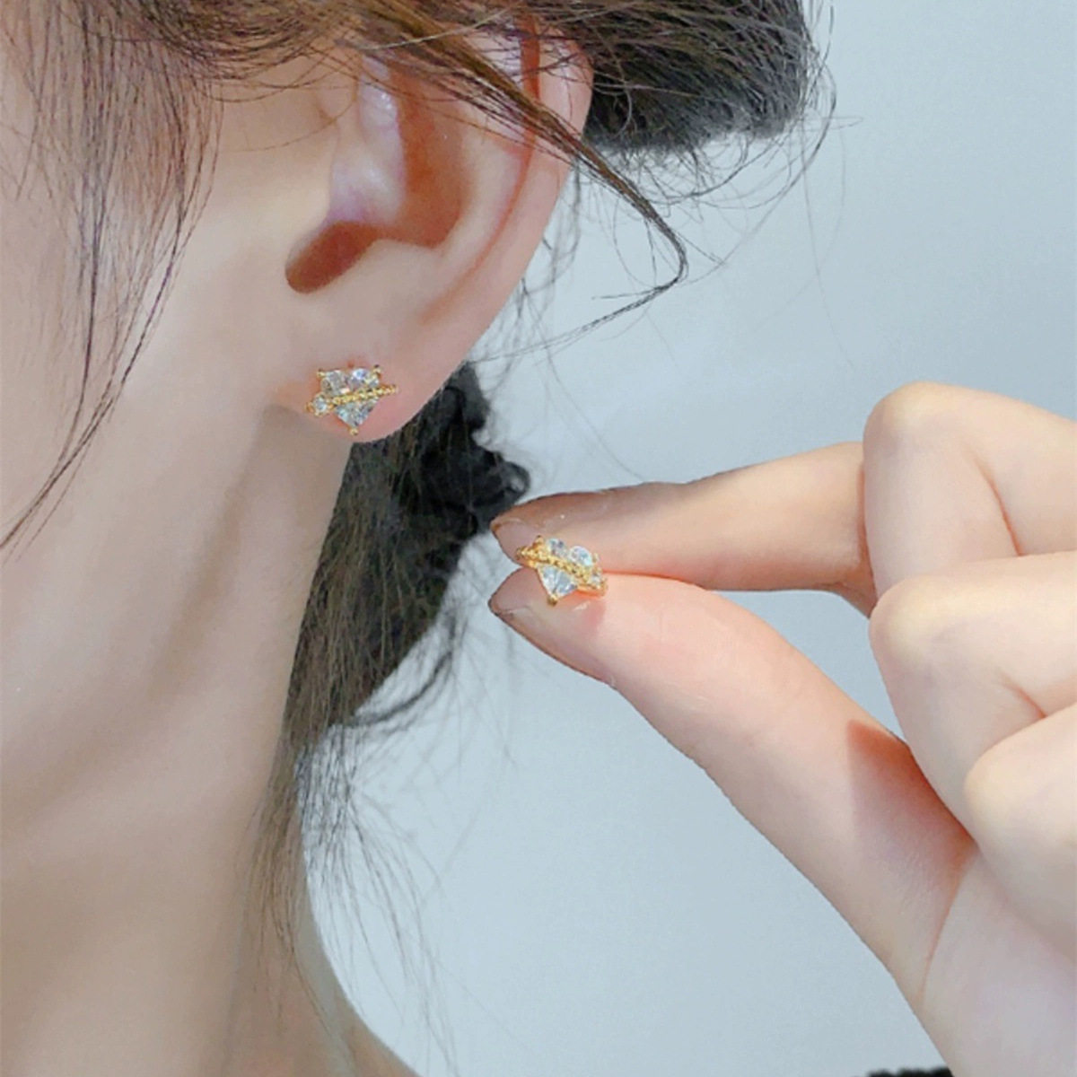 999纯银耳钉女养耳洞耳骨钉小众高级感锆石耳蜗钉水钻耳环银耳饰