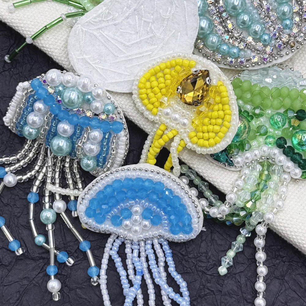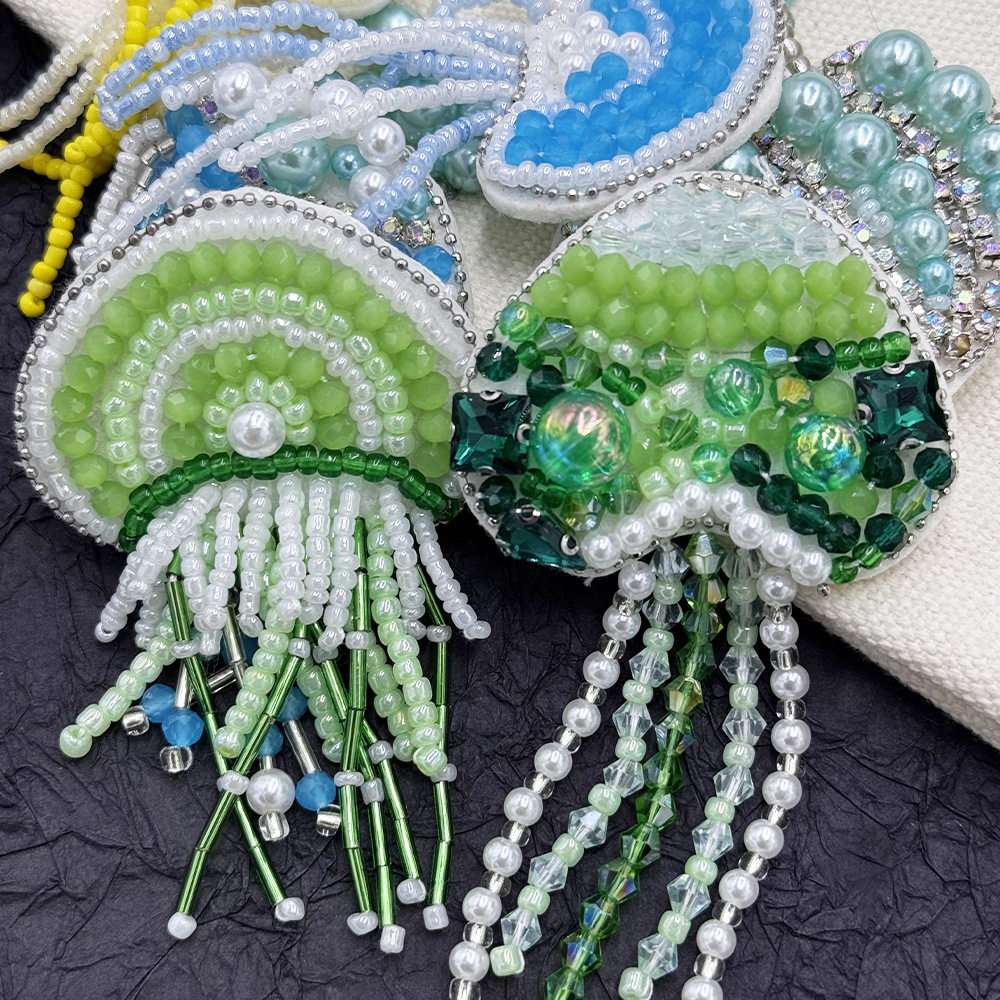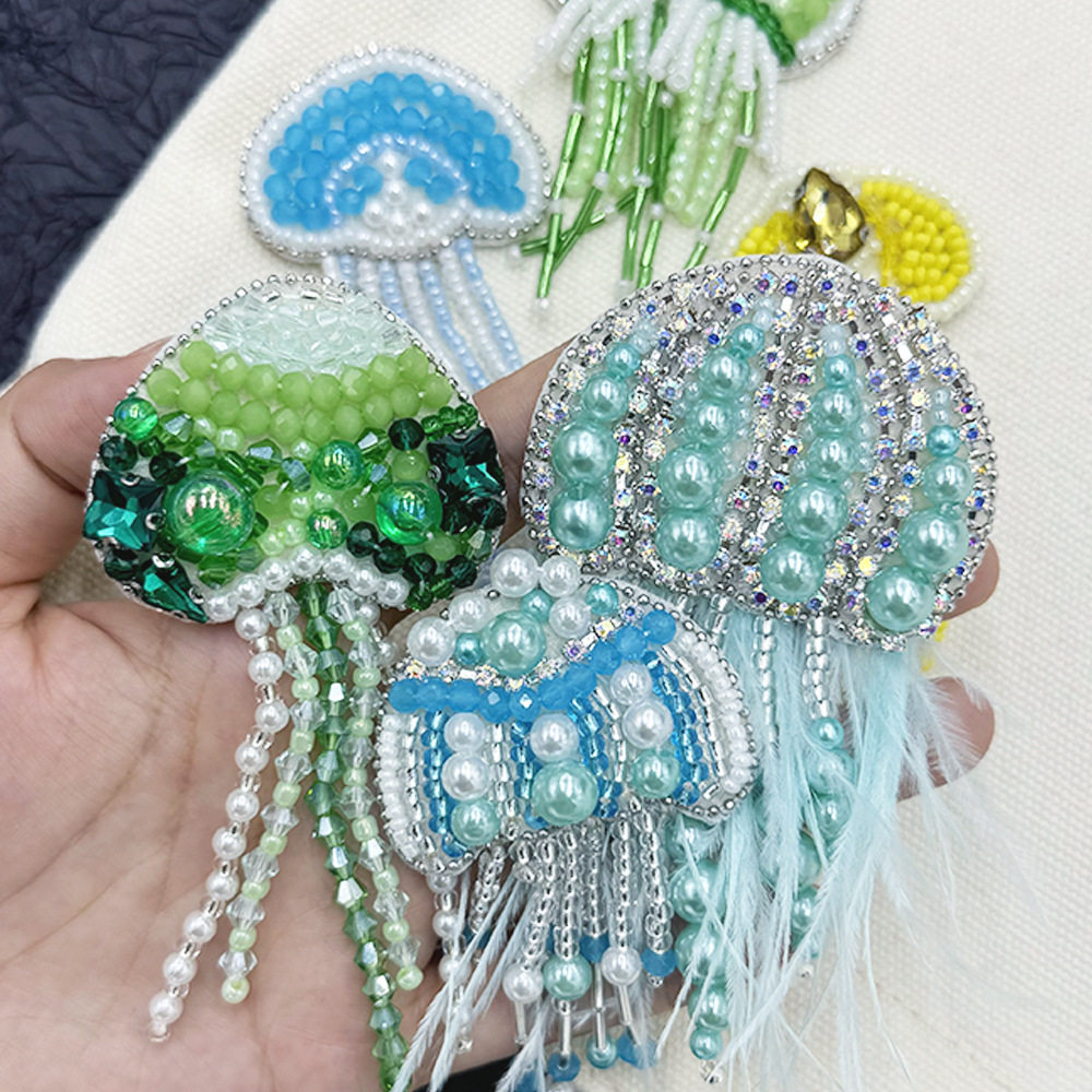 精美手工立体水母成品流苏布贴装饰贴花胸针DIY衣服鞋包帽修饰贴