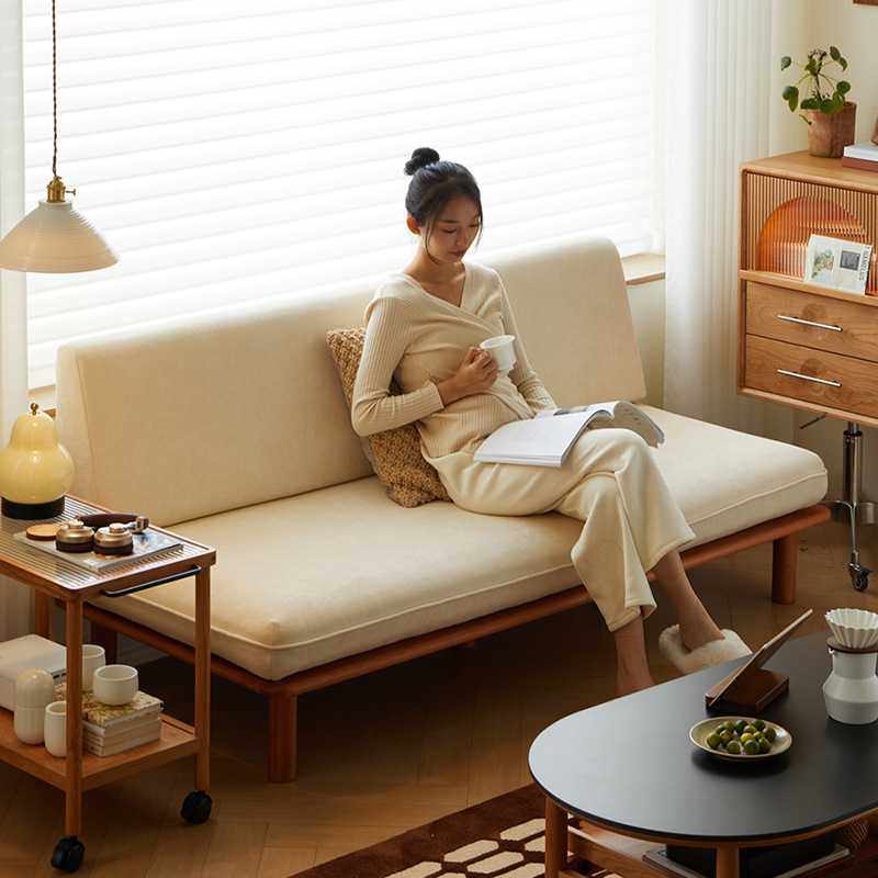 侘寂风实木沙发原木风家具小户型客厅躺椅三人位组合布艺直排沙发