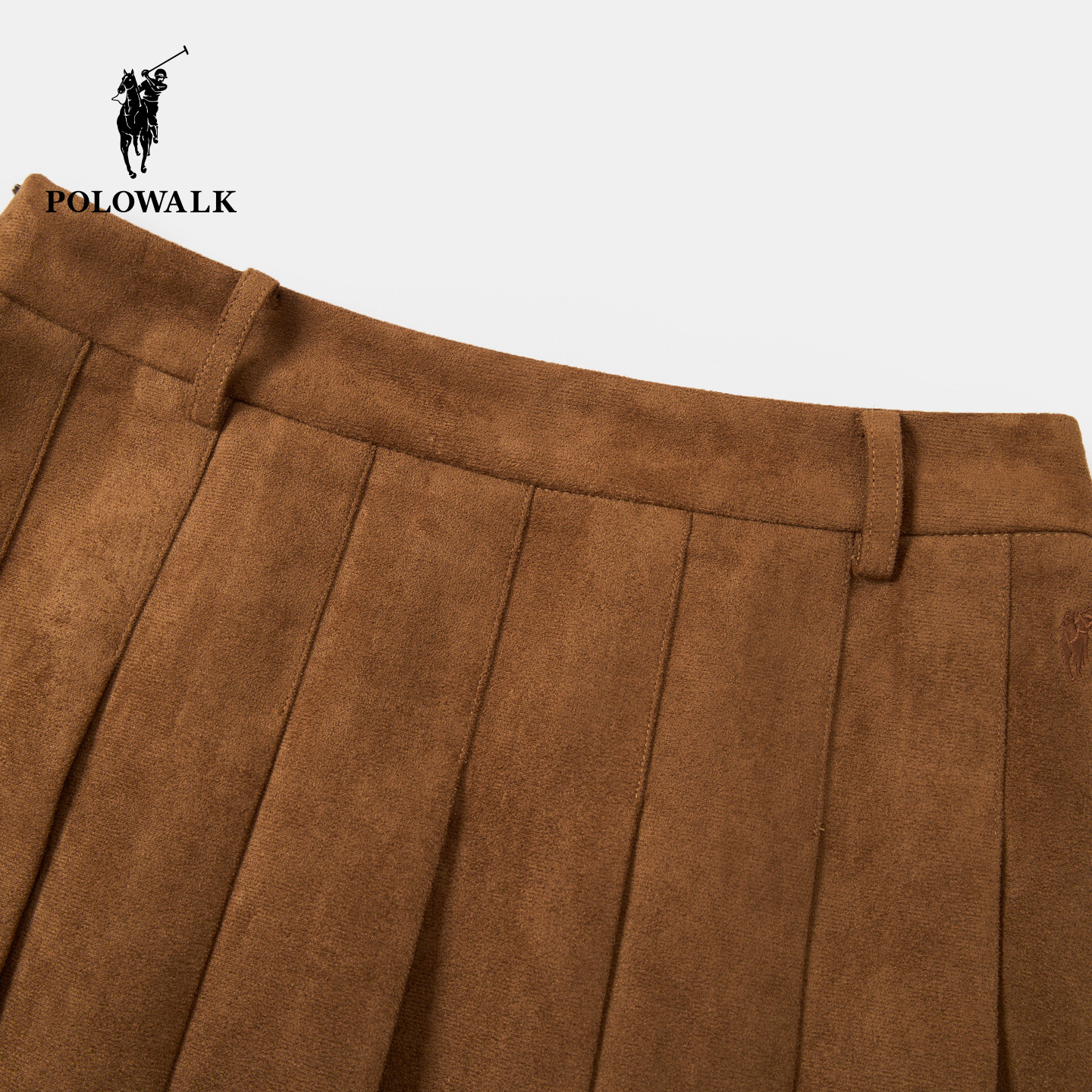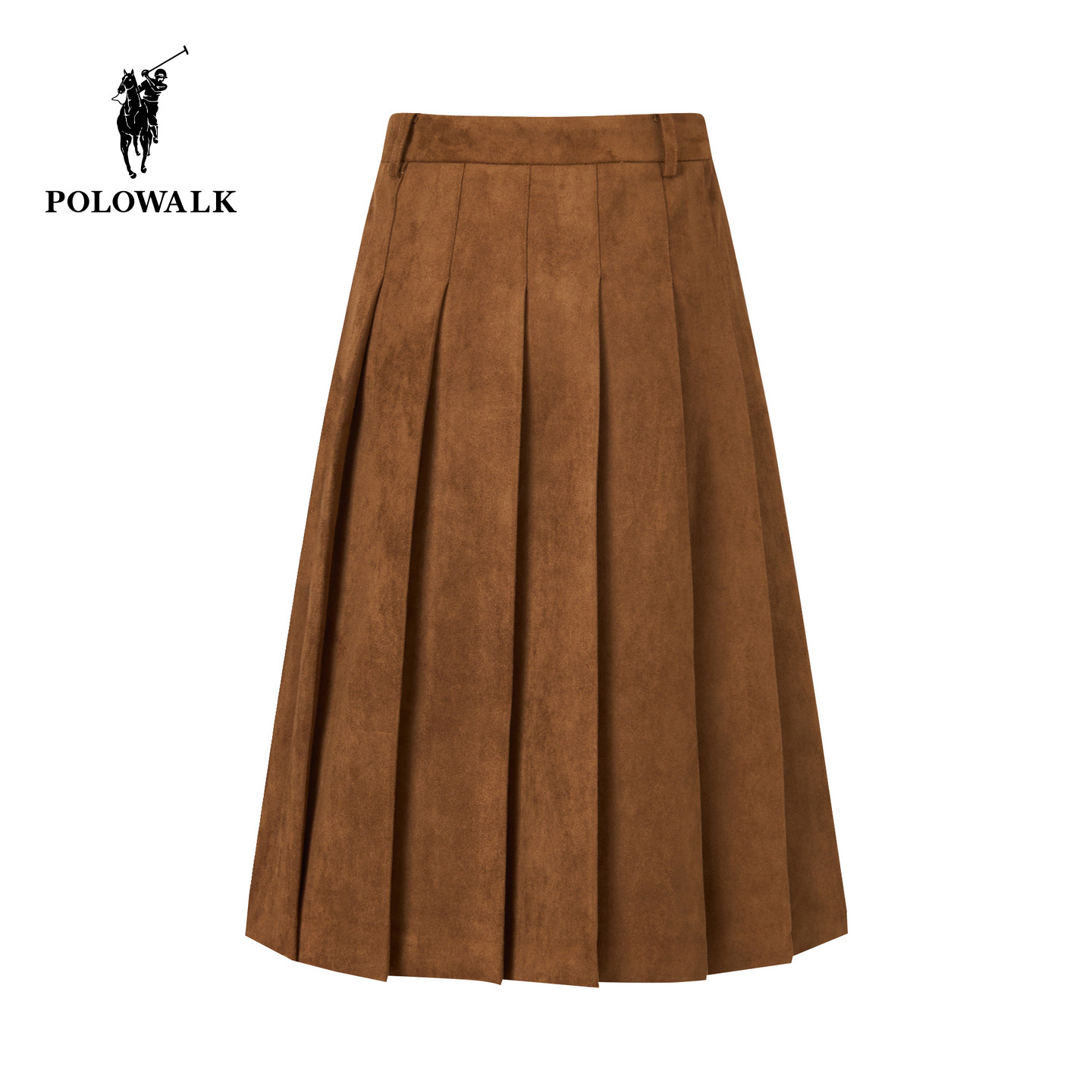 POLOWALK女式半裙2025秋冬裤新品女装淑女中腰百褶显瘦半身裙