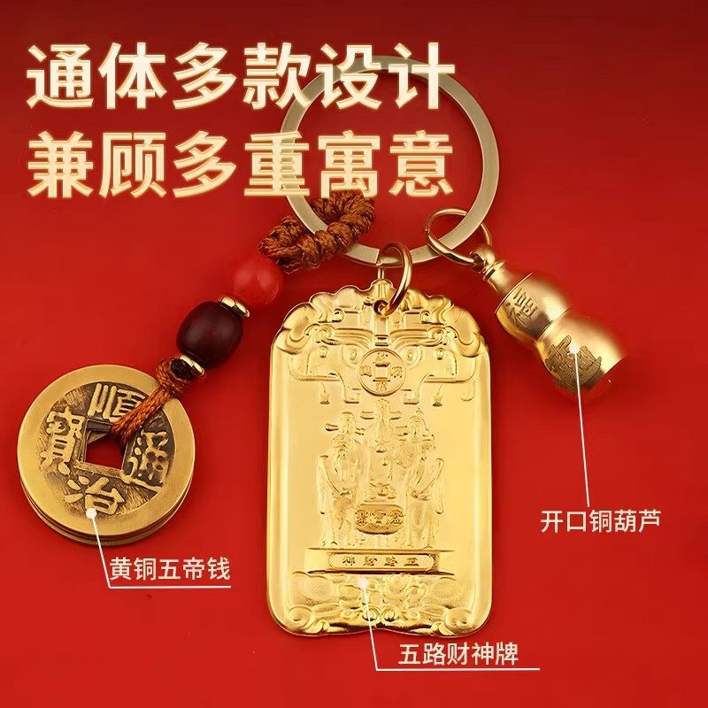 五路财神招财牌挂件护身符摆件纳五方福吉祥令钥匙扣十二生肖守护