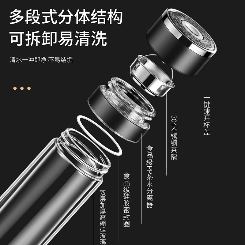 一键开盖水杯男2025新款茶杯男士泡茶专用双层保温玻璃杯茶水分离