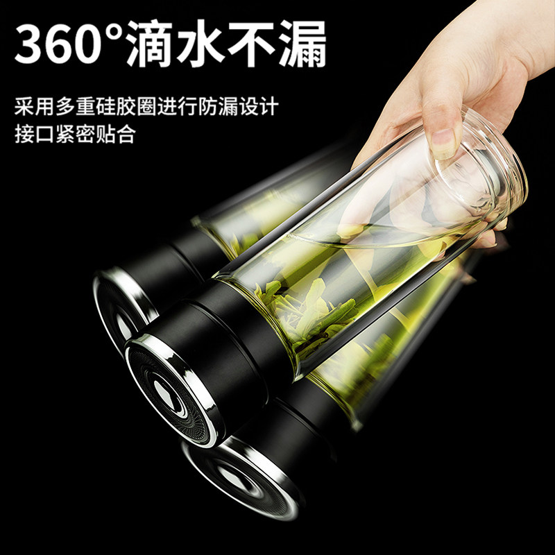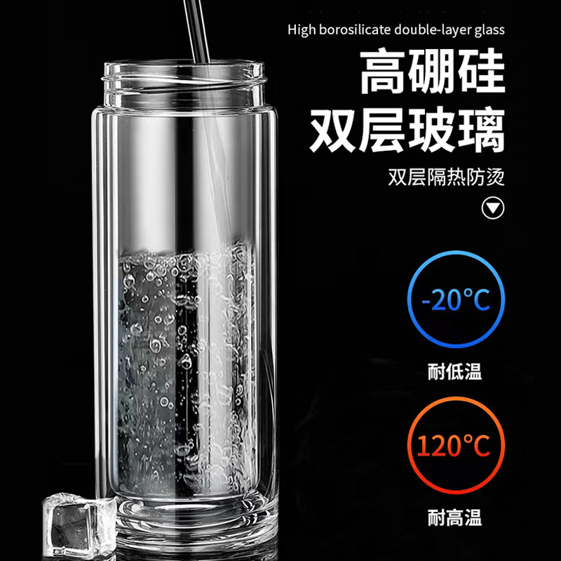 希诺玻璃杯双层保温泡茶杯男士水杯官方正品茶杯女家用杯子礼盒装