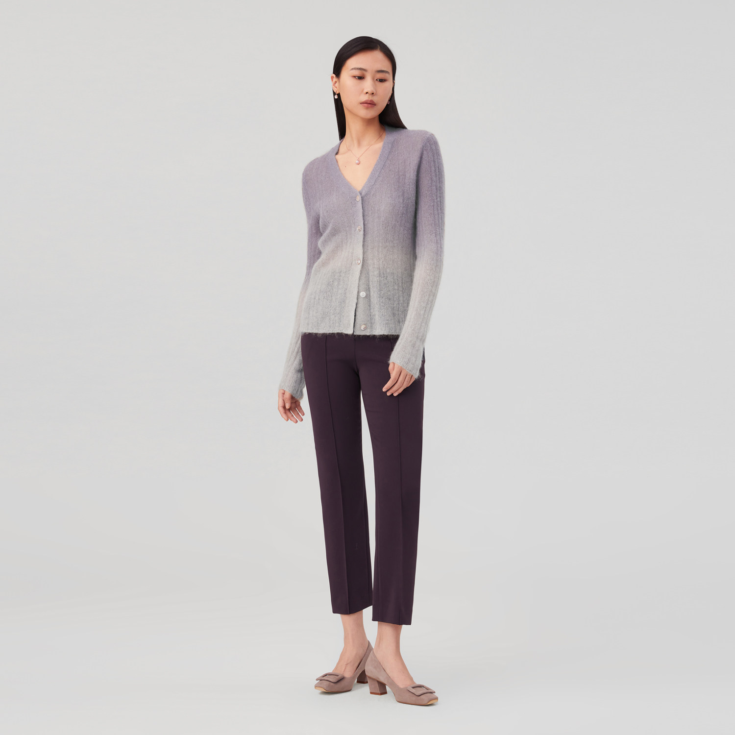 OVV秋冬新款女装吊染工艺马海毛优雅渐变印花针织开衫外套