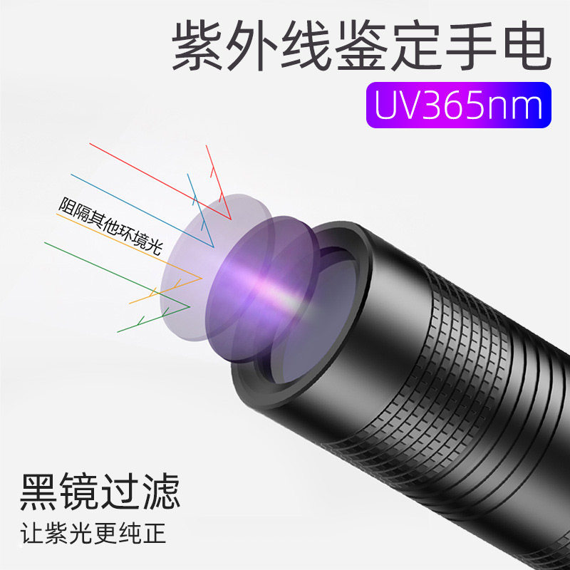 紫光灯鉴定玉石翡翠专用365nm紫外线手电筒烟酒检测验钞防伪UV灯