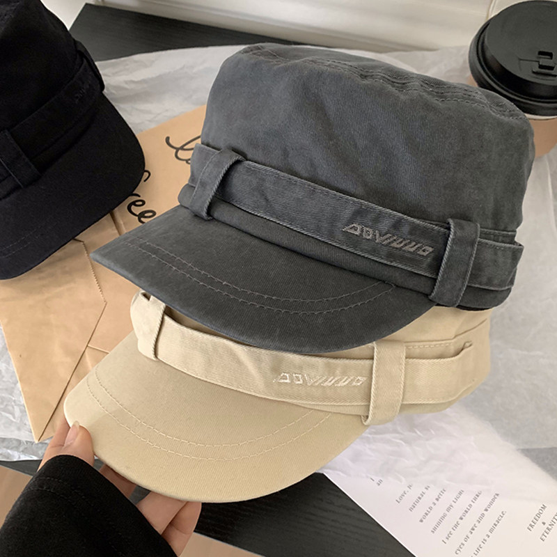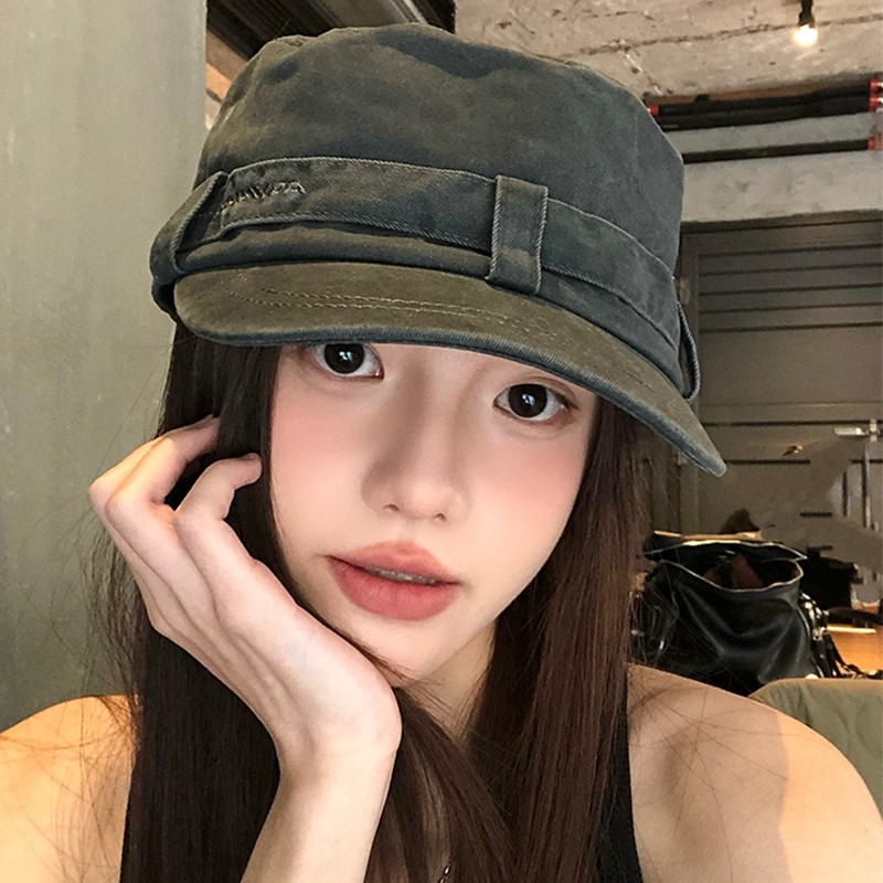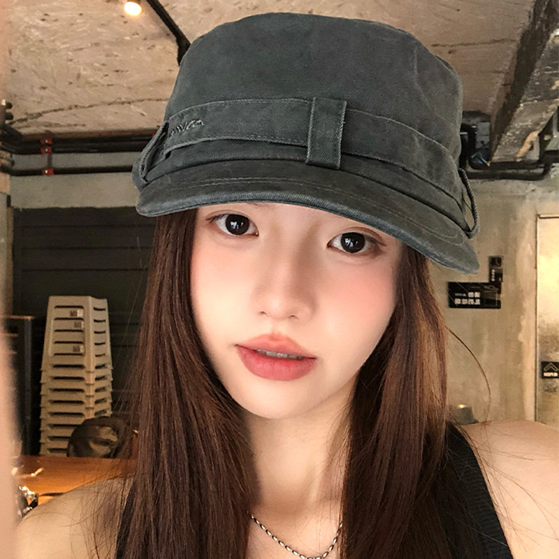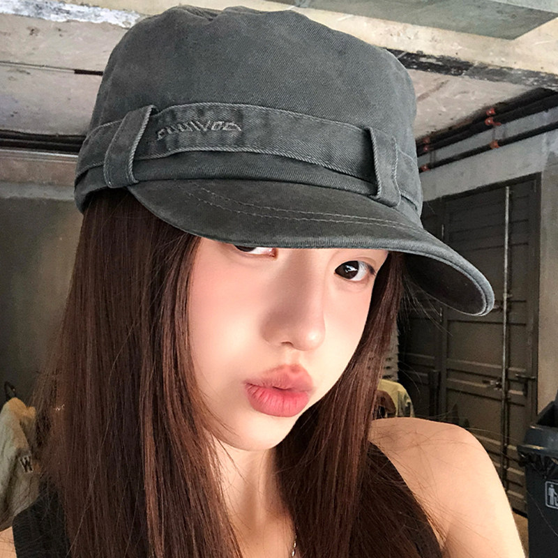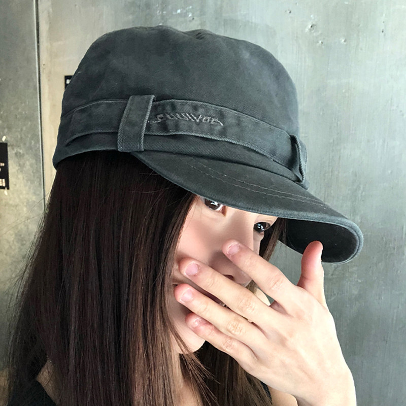 复古做旧休闲平顶帽女四季新款户外显脸小弯檐鸭舌帽子贝雷帽