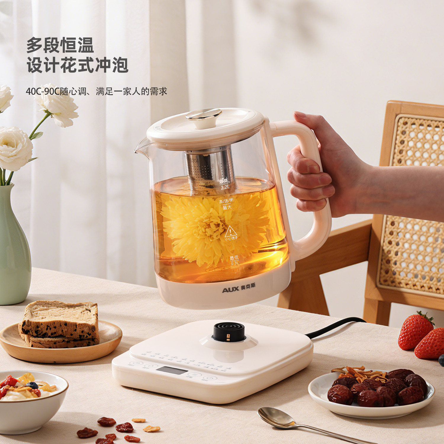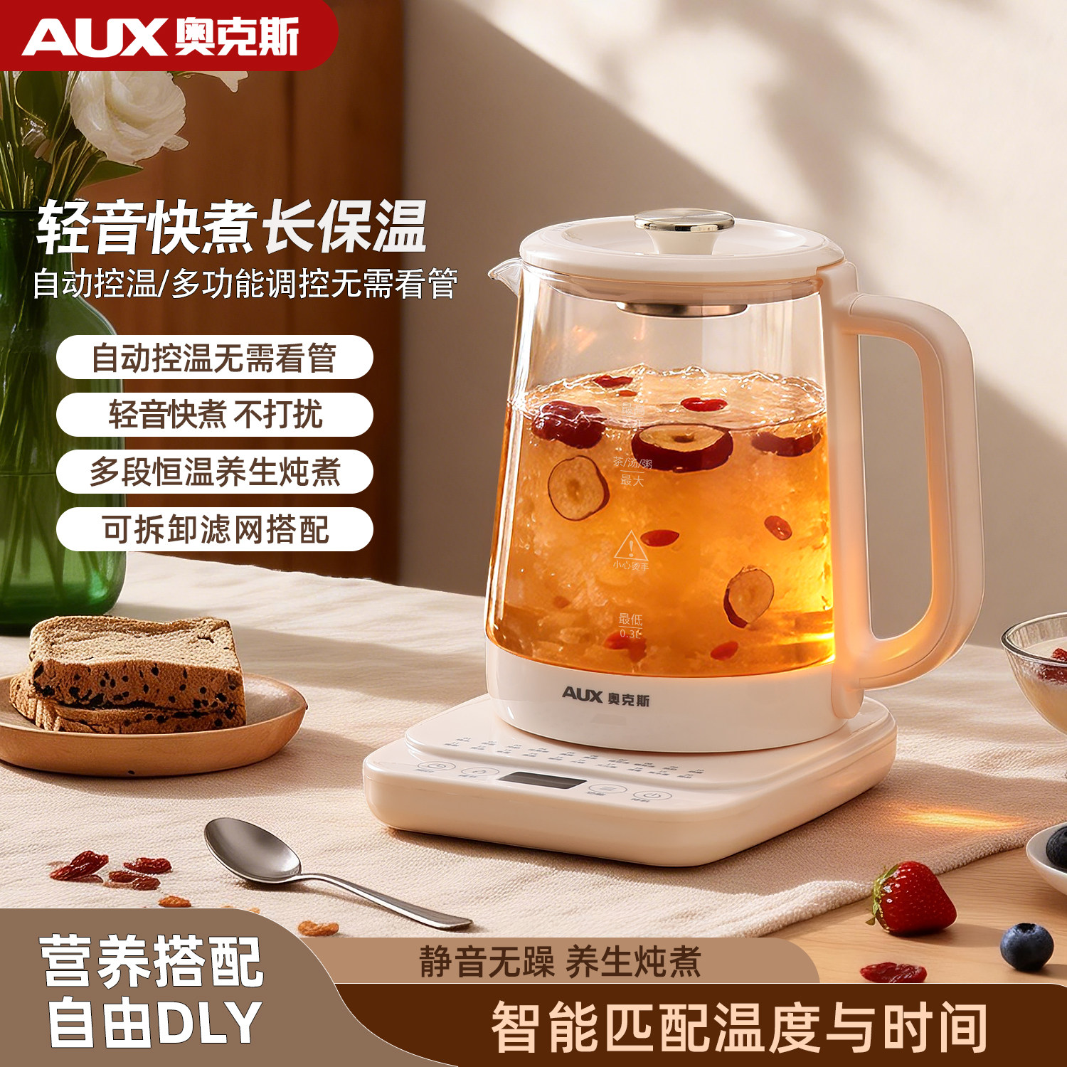 奥克斯养生壶炖煮一体2026新款烧水壶煮茶器大容量办公室旗舰正品