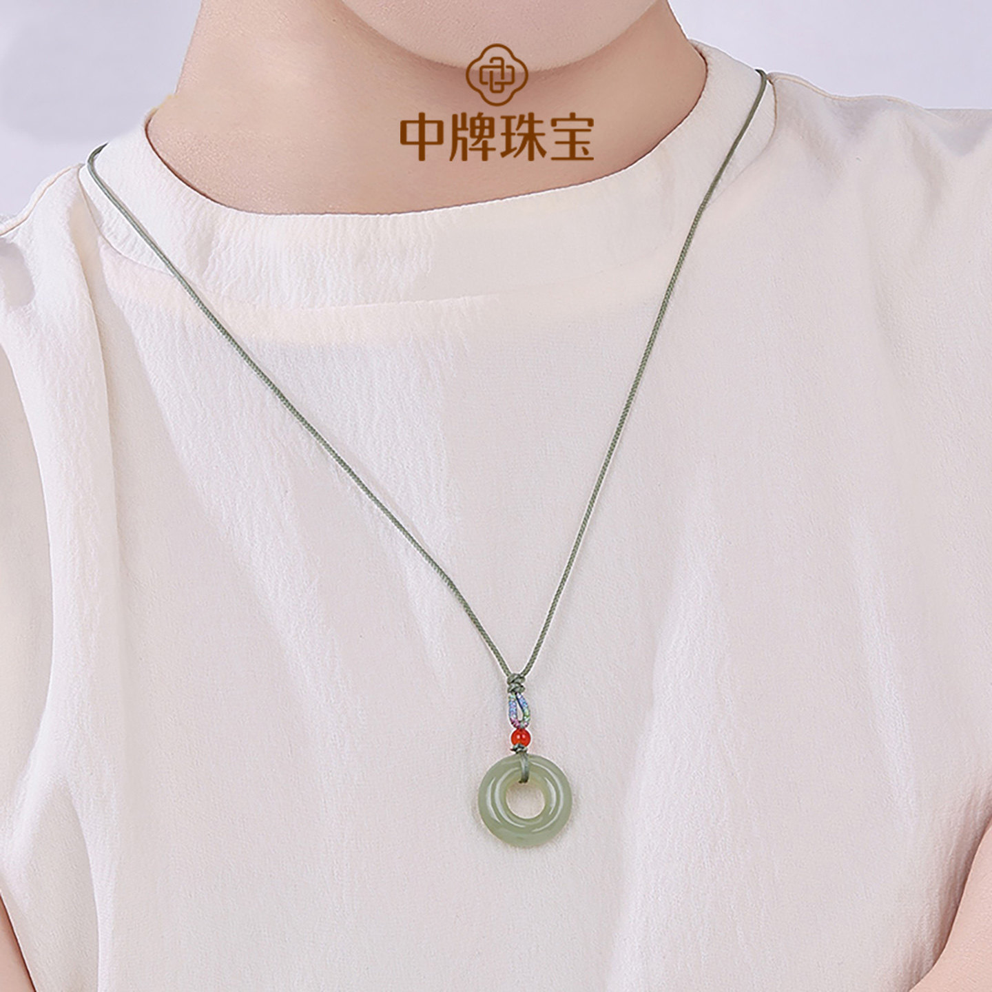 周六福和田玉吊坠平安扣玉坠项链玉石白玉挂坠男女款新年礼物