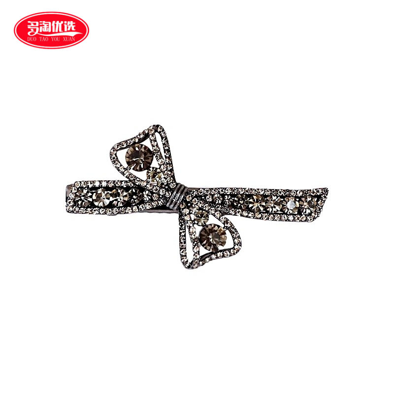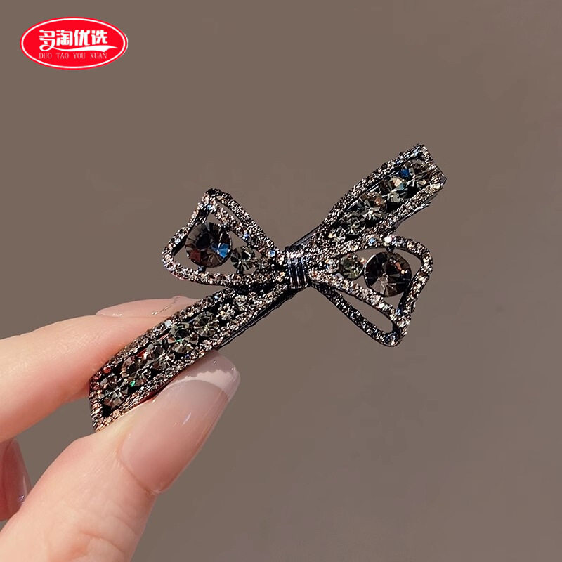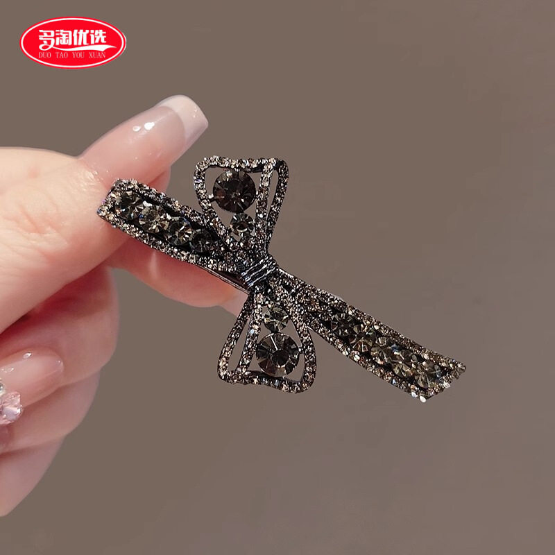 枪黑水钻蝴蝶结发夹女侧边夹碎发刘海夹新款轻奢高级感鸭嘴夹精致