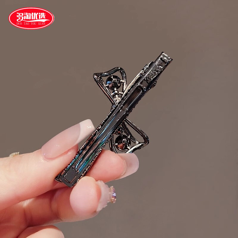 少女小金属刘海碎发一字鸭嘴造型侧边美妆发夹女发卡黑色夹子发饰
