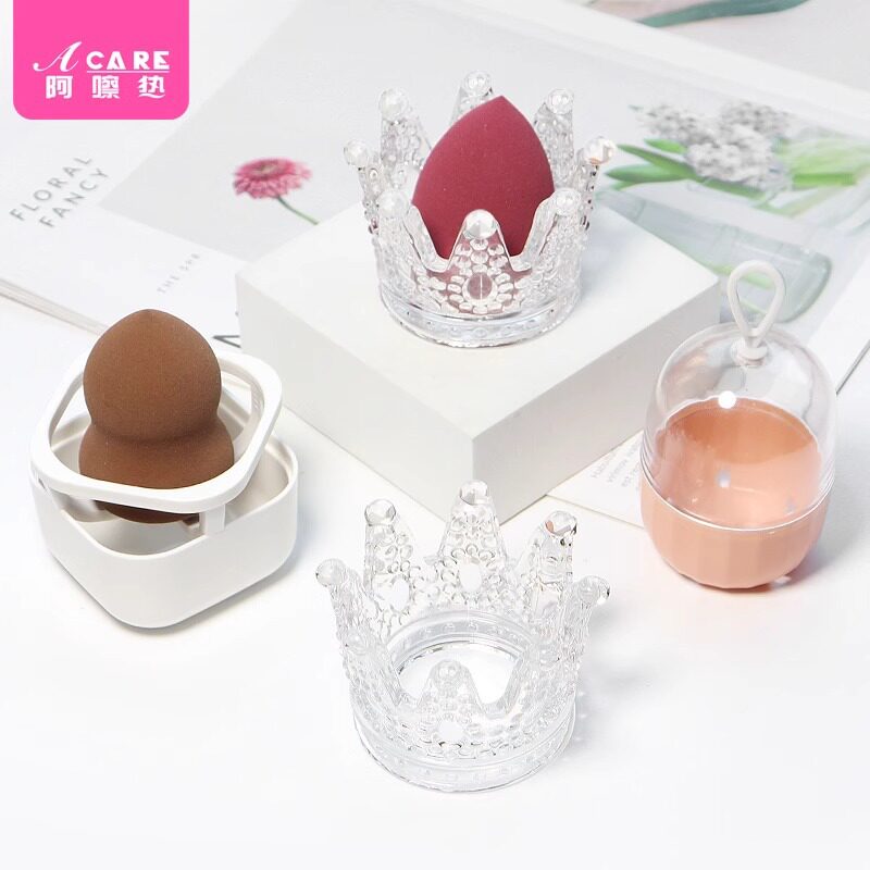 收纳盒/美妆蛋B1pn0-海绵化妆蛋架带盖装粉扑防尘便携透气透明