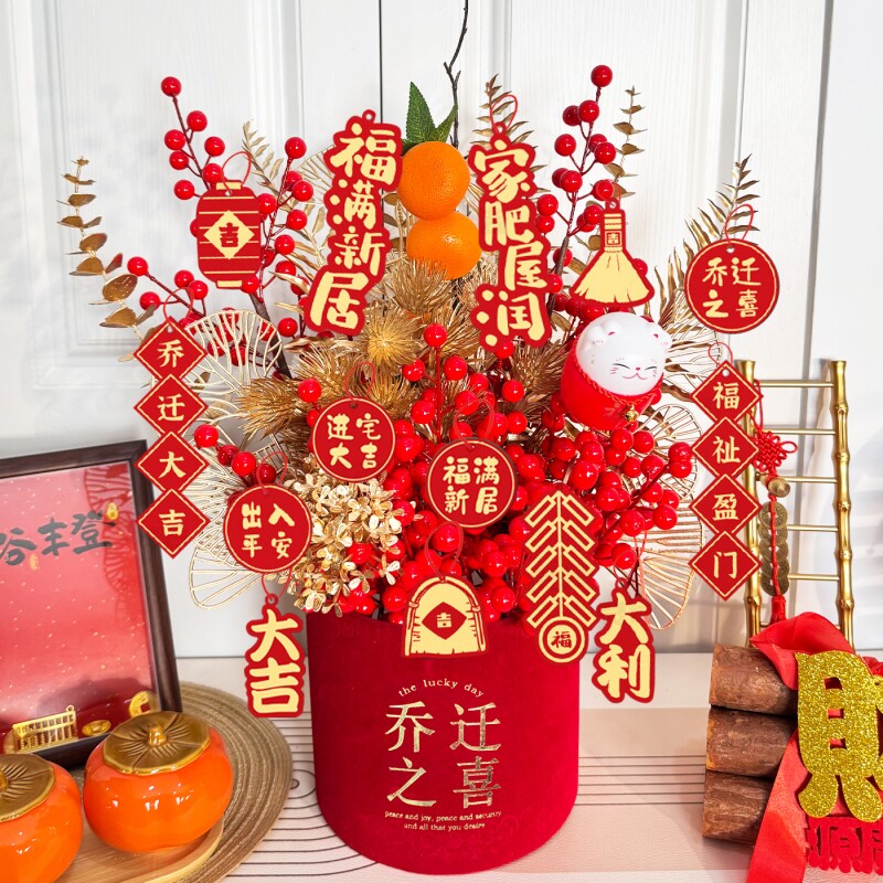 新居乔迁之喜客厅搬家福桶结婚装饰摆件仿真花发财果插花新婚礼物