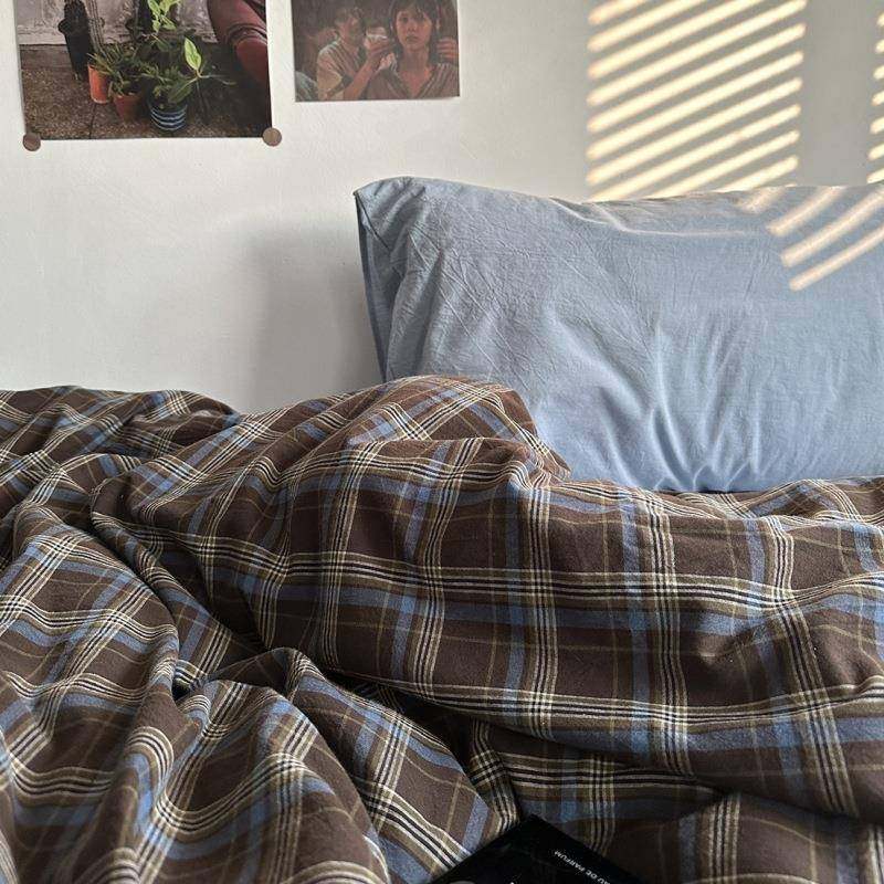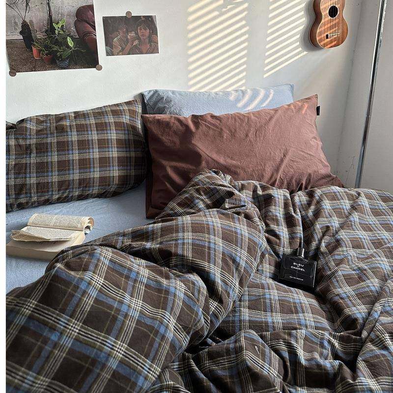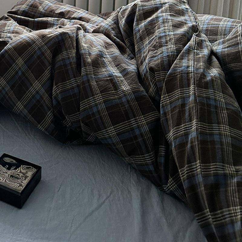 南通家纺查尔斯领结美拉德复古格子全棉四件套纯棉水洗棉床单