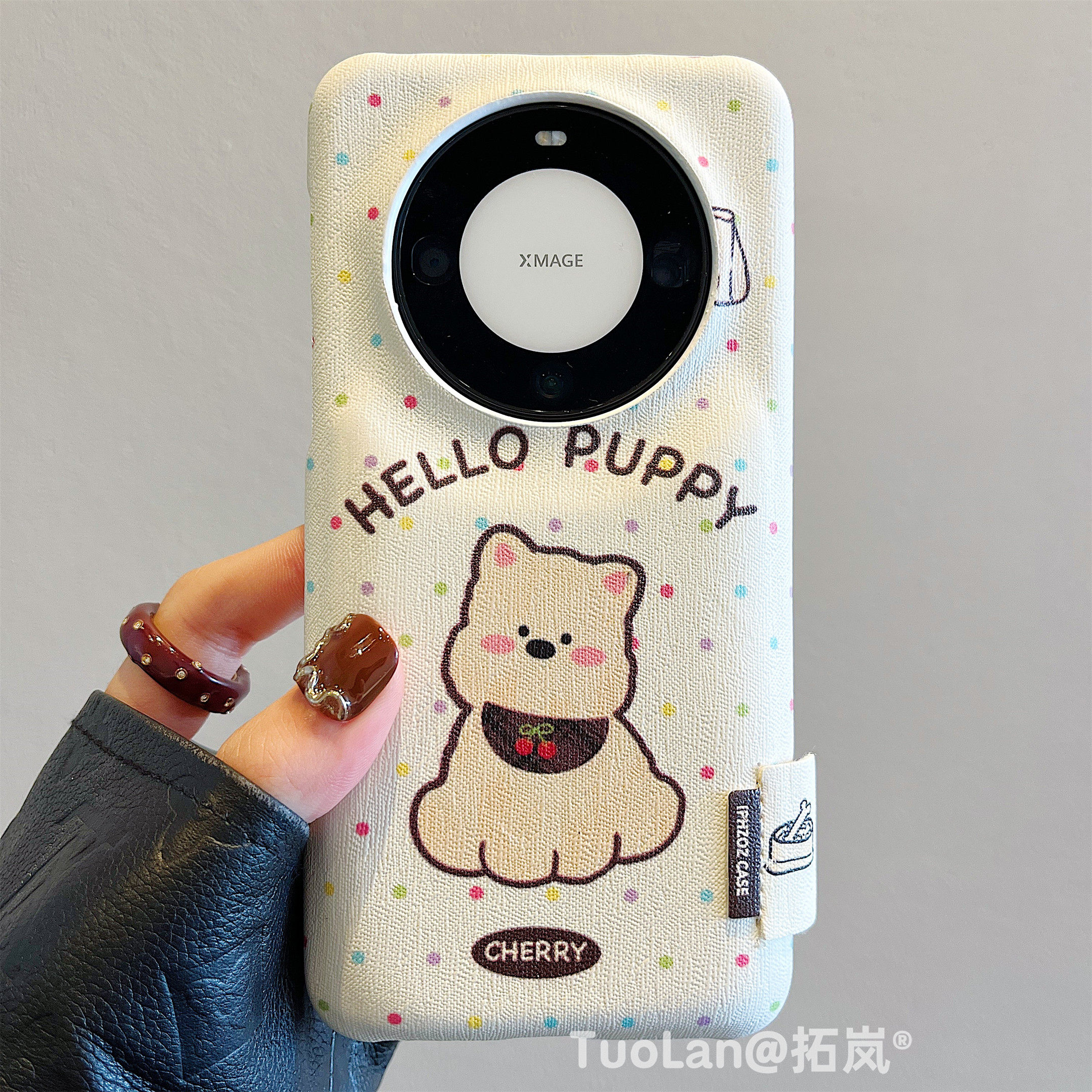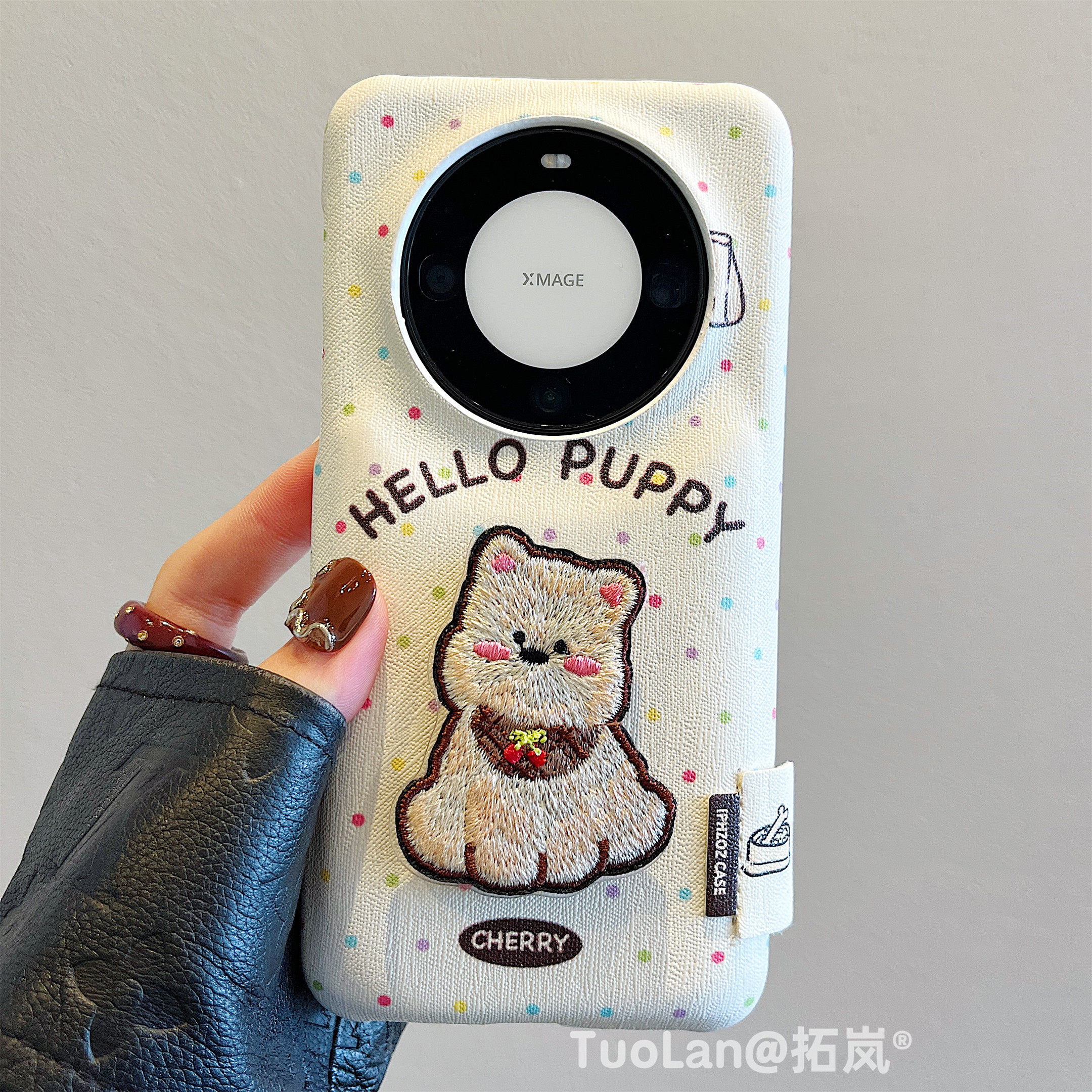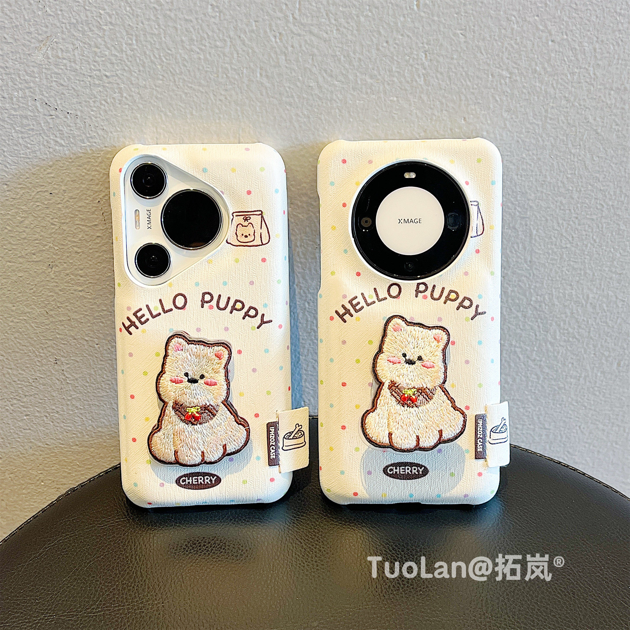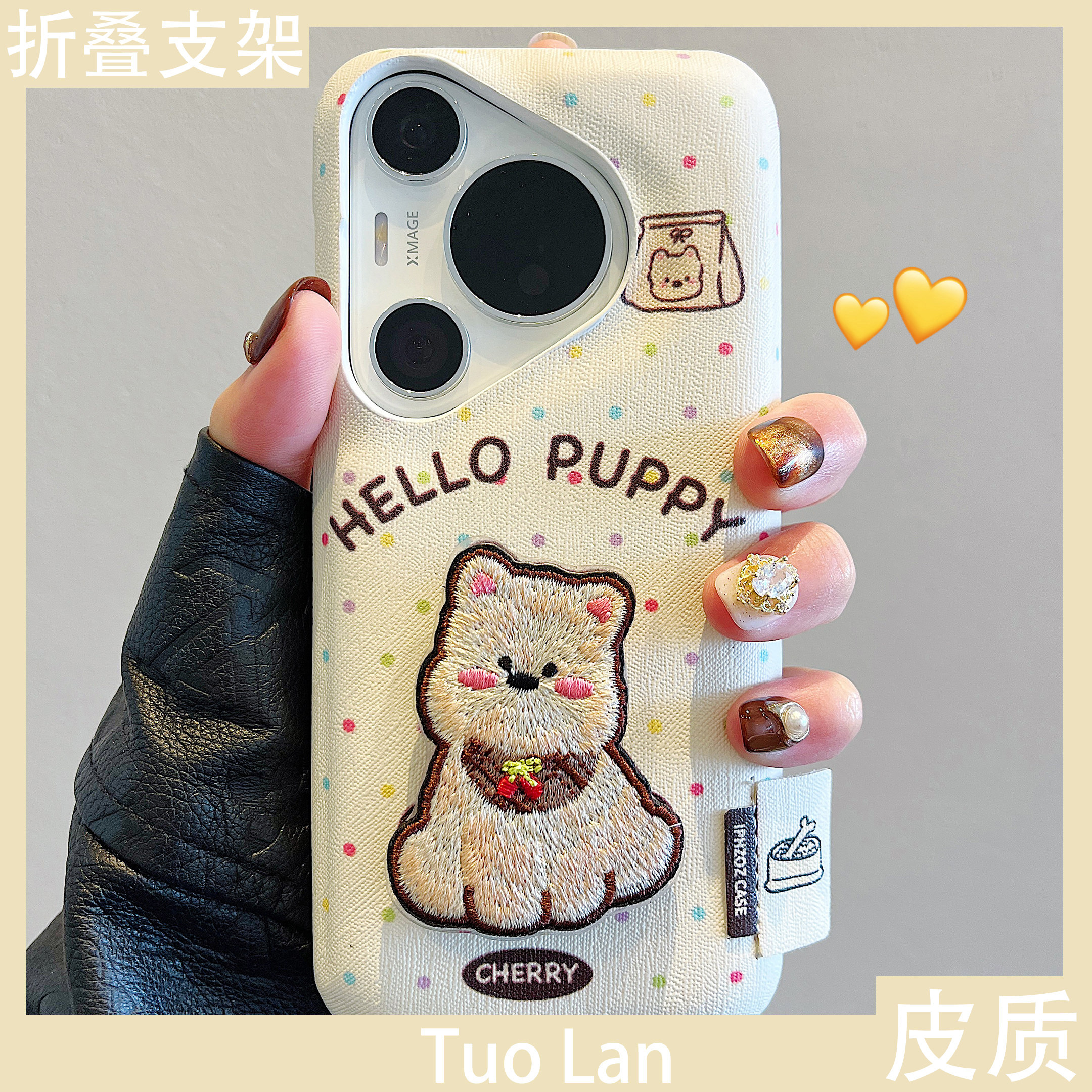 拓岚 适用华为mate60pro+新款手机壳mate70韩风彩色波点立体刺绣西高地狗狗折叠支架pura70pro皮质鼓包防摔女