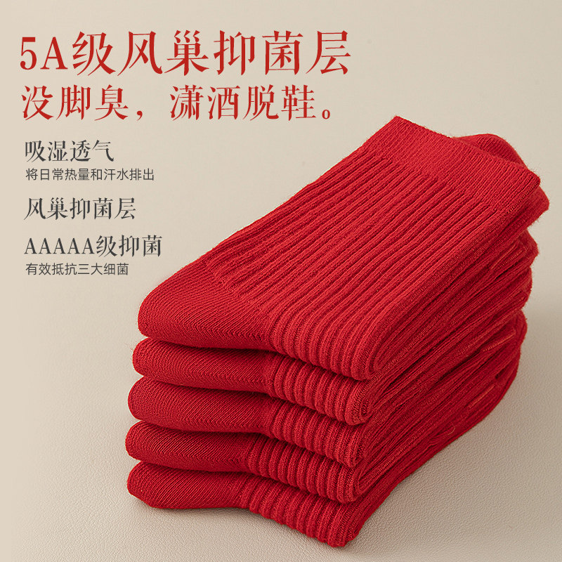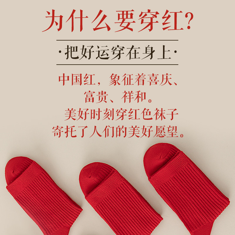 红袜子2026马年本命年礼物红色短袜礼盒男女同款情侣中筒袜抗起球