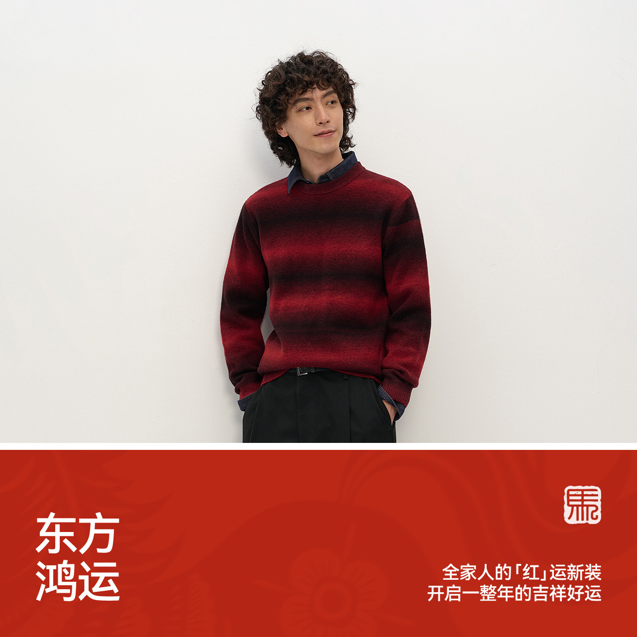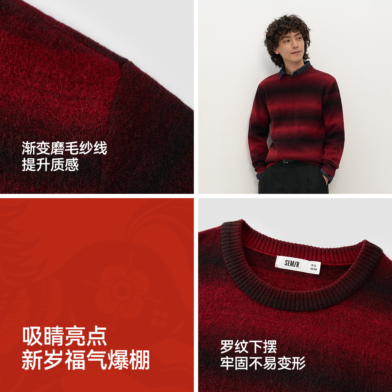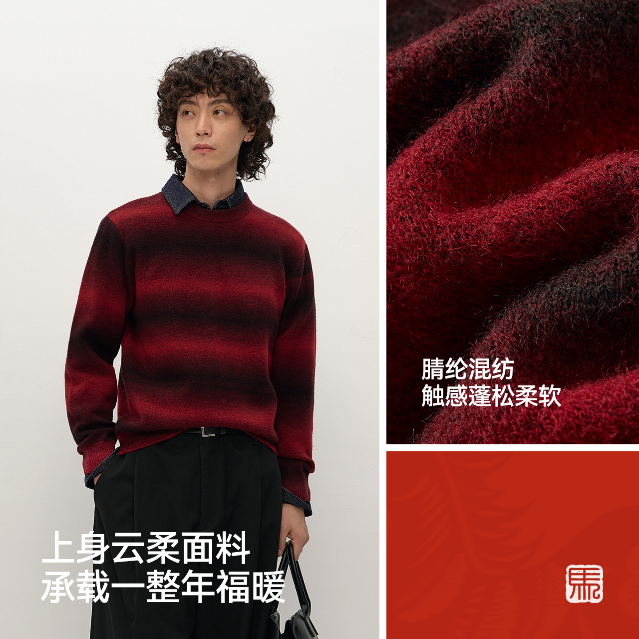 【王一博同款】蕉内503+++男女同款渐变套头毛衣羊毛红色本命年