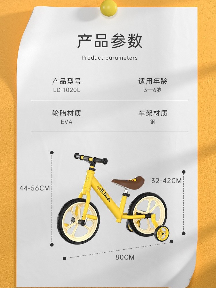 小黄鸭儿童平衡车宝宝脚踏车滑行自行车二合一小孩滑步车带辅助轮