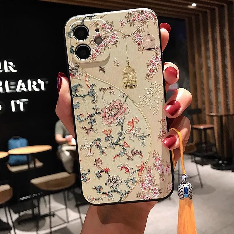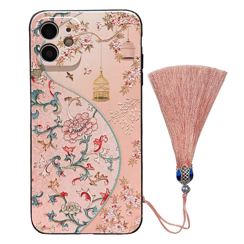 立体浮雕花朵琉璃鸟笼适用苹果16promax手机壳iPhone15高级14全包华为pura80pro中国风华为mate70防摔保护套
