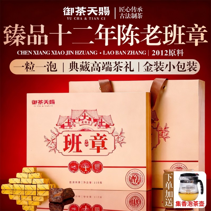 十二年老班章陈香熟普洱茶叶冰岛糯香古树熟茶小金砖沱茶送礼盒装