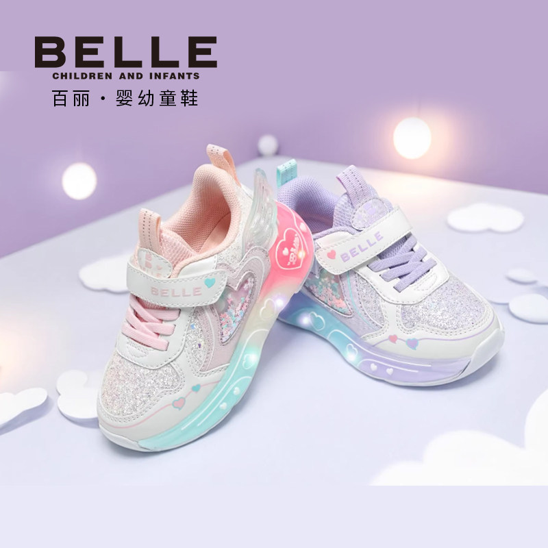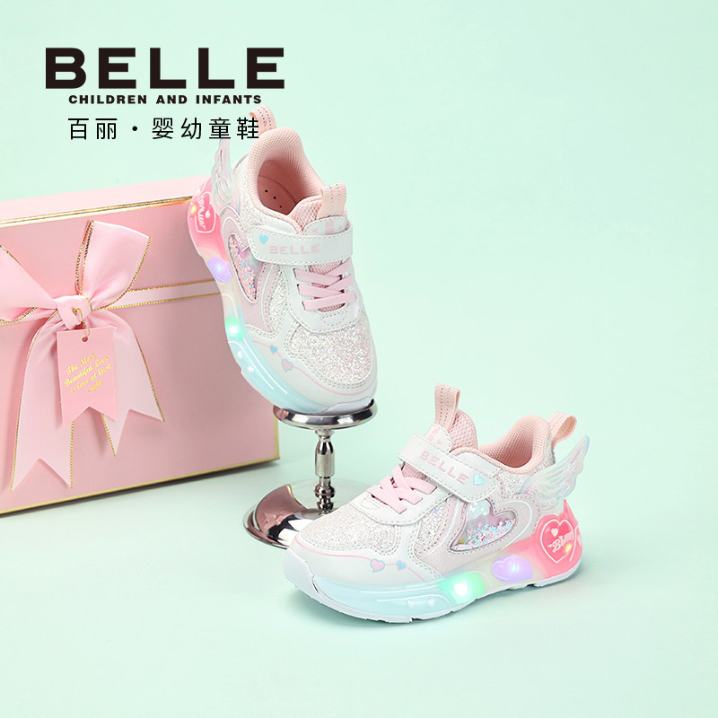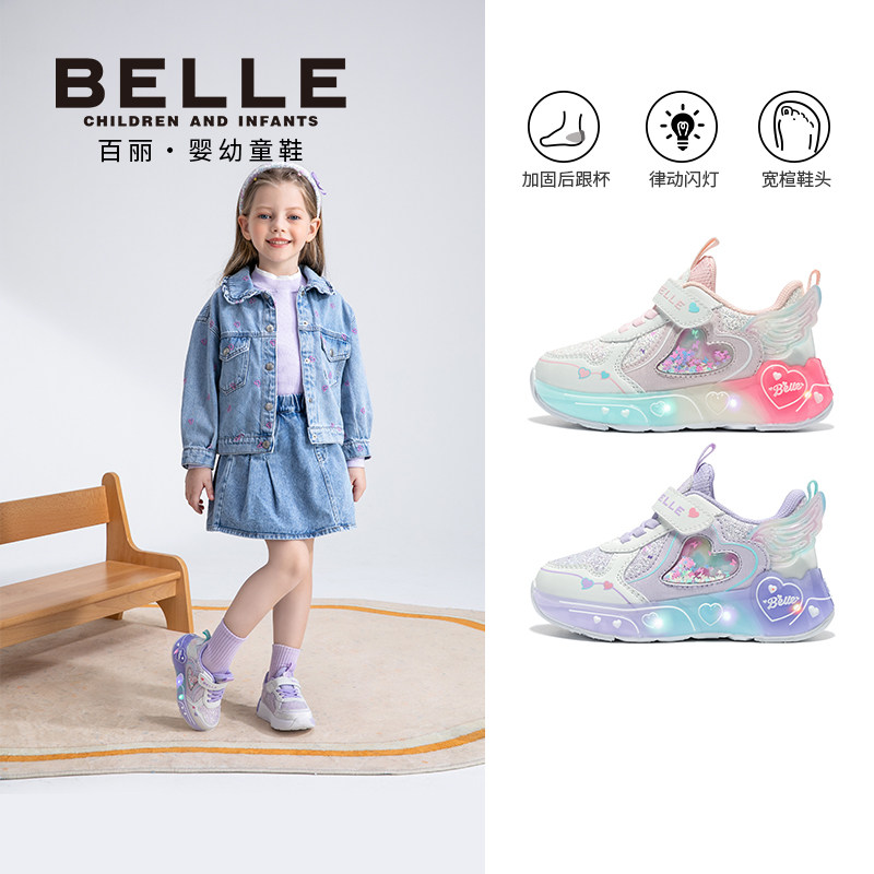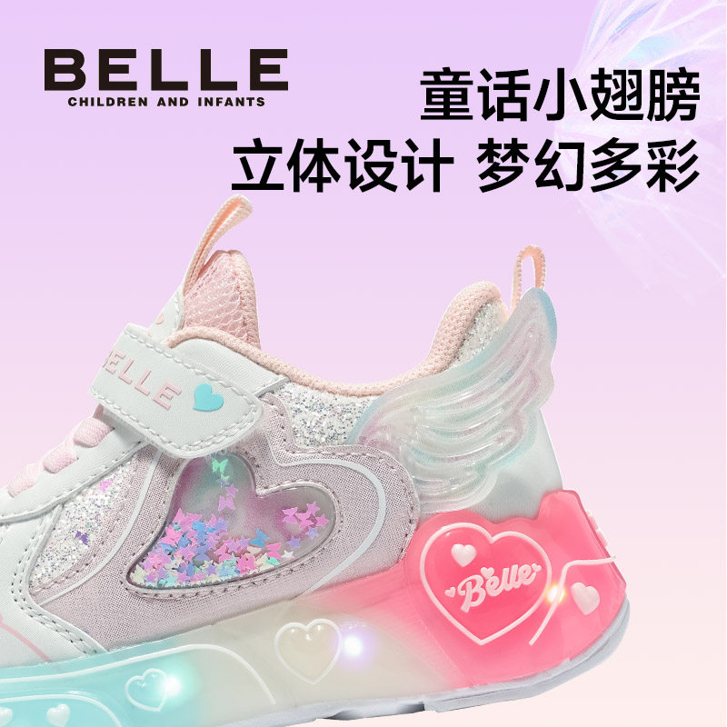 百丽童鞋2026春季新品女童运动鞋爱心大翅膀闪灯鞋宝宝防滑休闲鞋