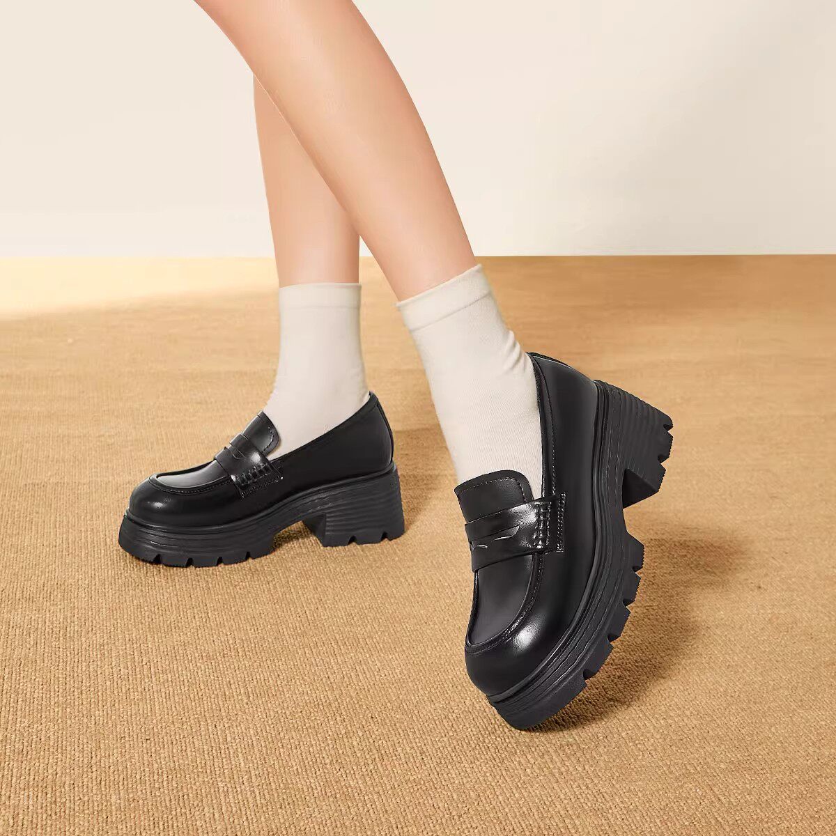 真皮厚底乐福鞋女2025春秋新款季松糕黑色百搭单鞋jk英伦风小皮鞋