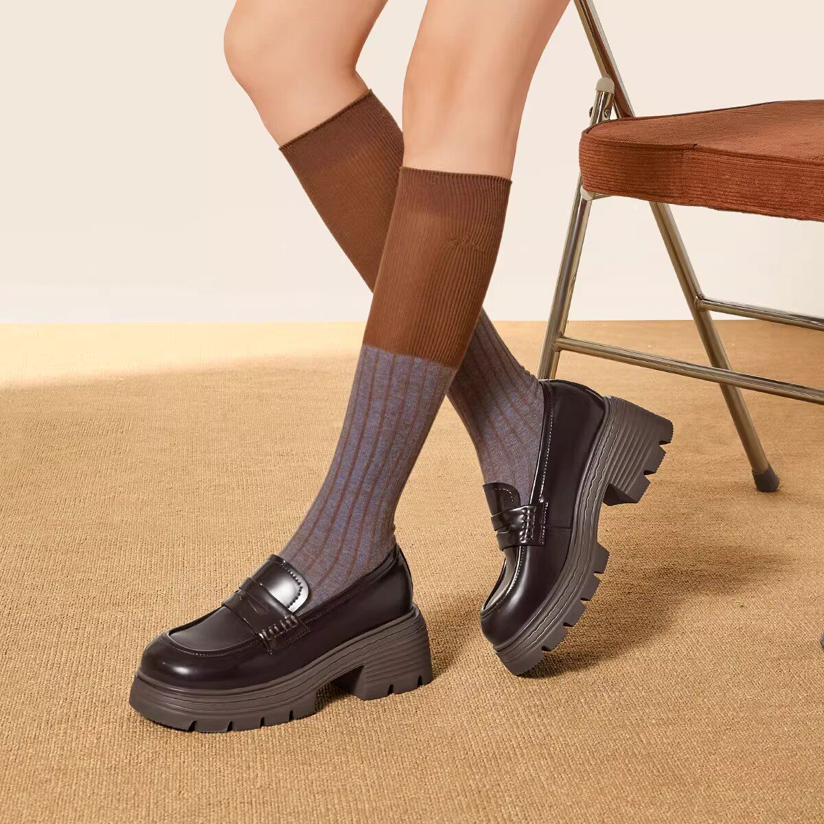 骆驼女鞋2025秋季新款复古百搭休闲通勤单鞋厚底乐福鞋
