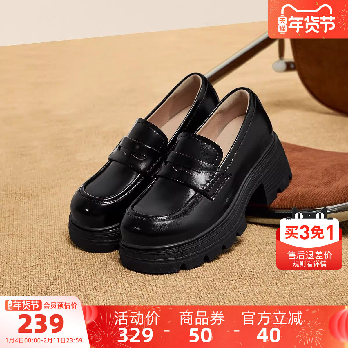 真皮乐福鞋女鞋子2025春秋新款爆款厚底英伦风小皮鞋女黑休闲单鞋