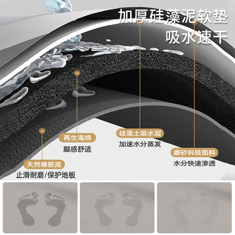硅藻泥浴室地垫卫生间门口吸水脚垫厕所洗手间地毯卫浴洗澡防滑垫