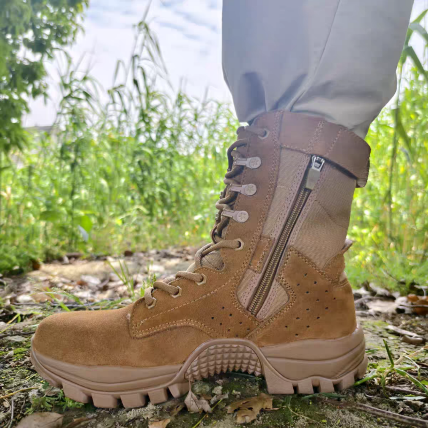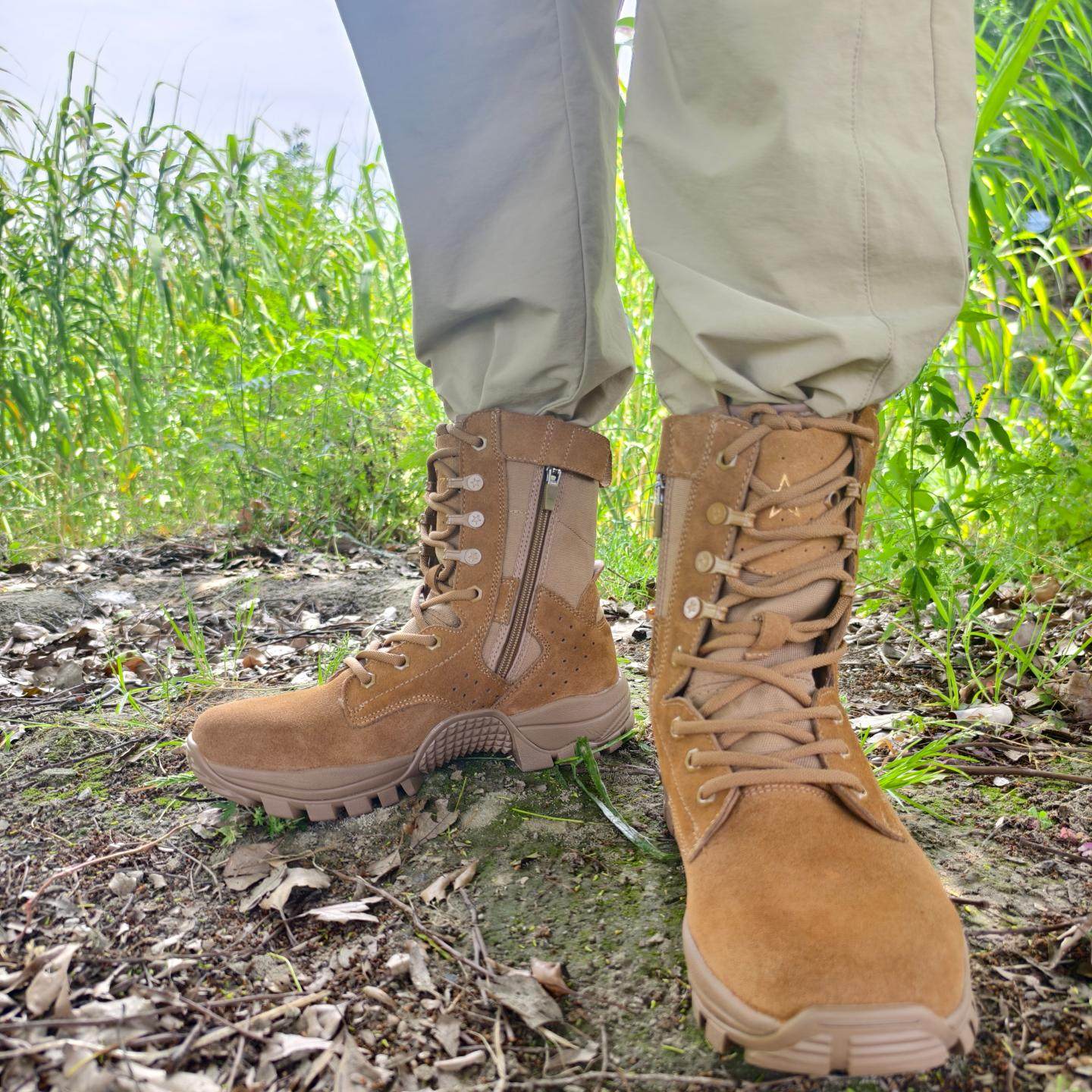 新款棕色作战靴套式作战训靴男高帮牛皮碳板登山作战鞋户外沙漠靴
