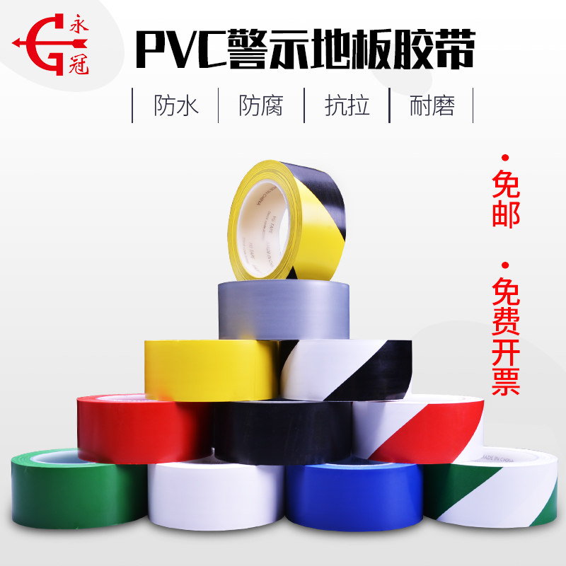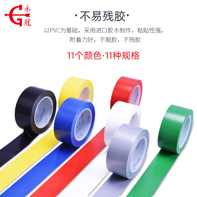 永冠黑黄警示胶带无尘车间隔离胶带彩色划线标识胶带PVC地板胶带