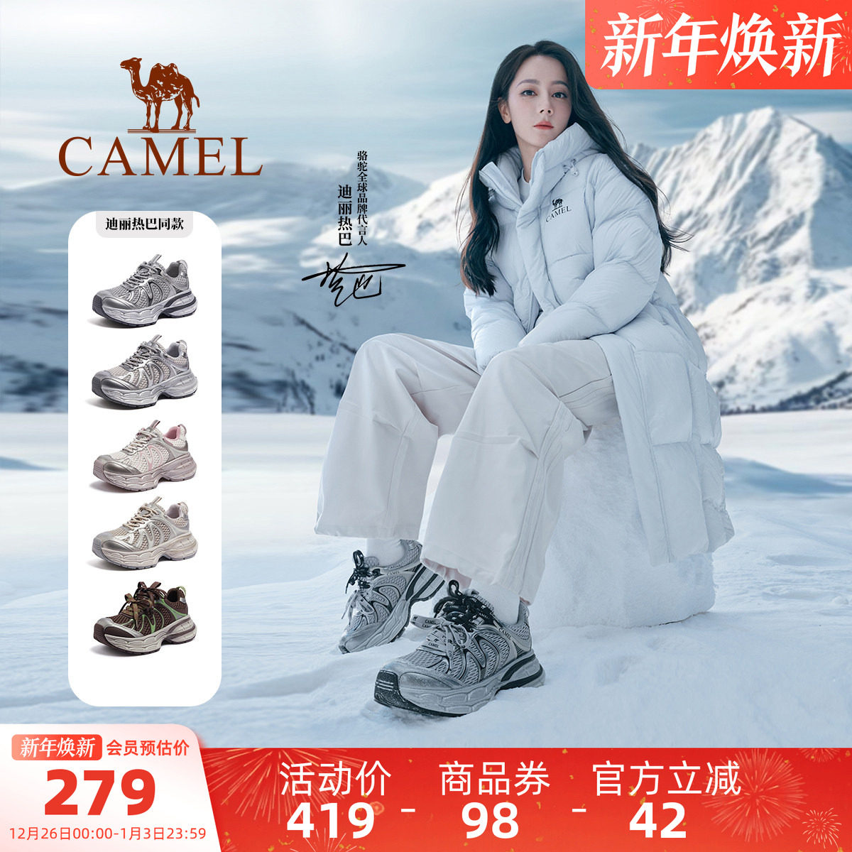 【迪丽热巴同款】骆驼银月户外复古老爹鞋女鞋秋季新款加绒运动鞋